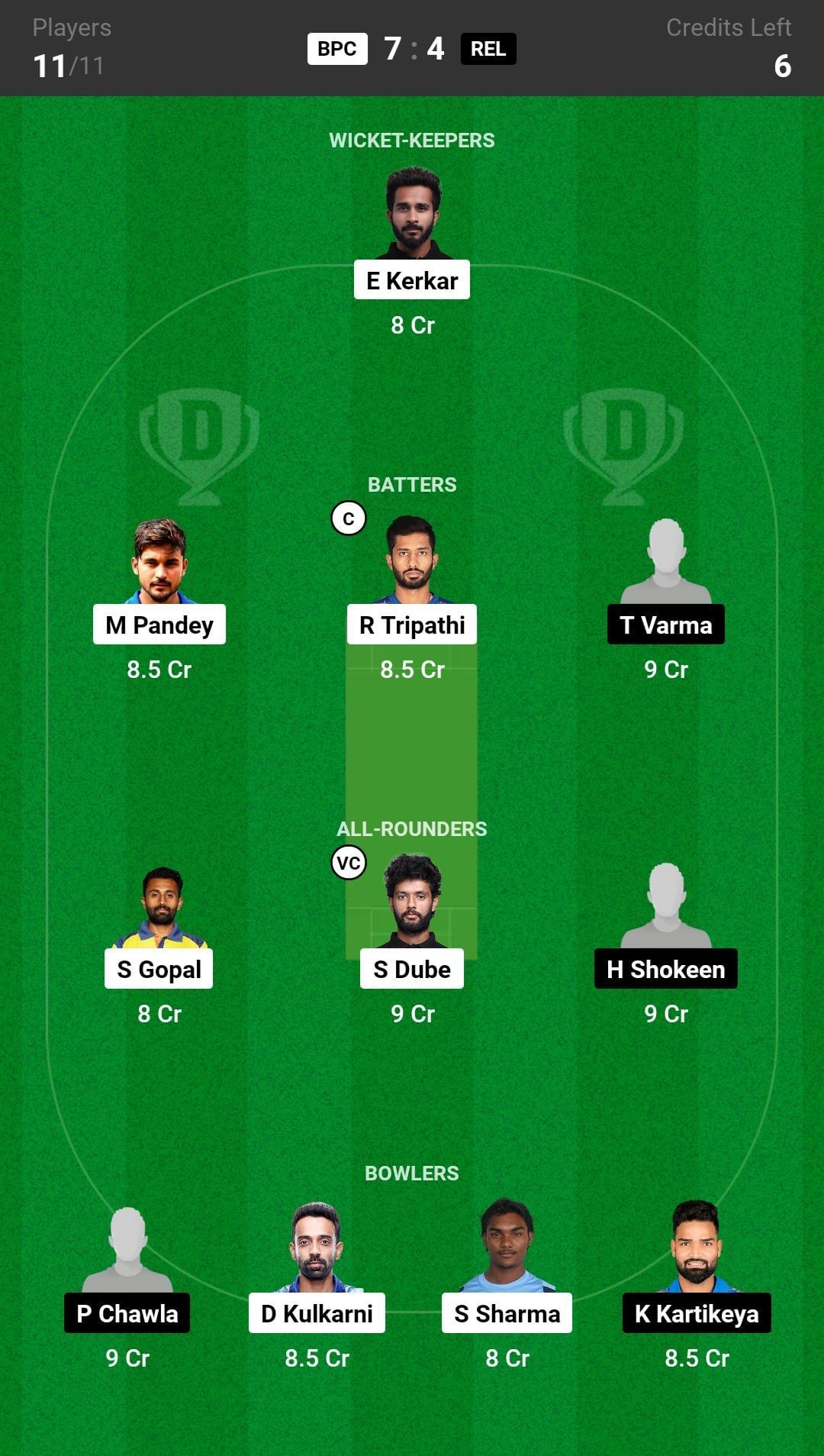 BPCL vs Reliance 1 Dream11 Prediction Today, Grand League
