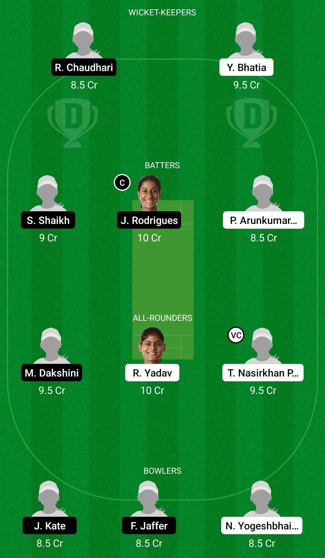 Fantasy Suggestion #2: R S Chaudhari, Y H Bhatia, Simran Shaikh, Jemimah Rodrigues, P A Patel, M Dakshini, Radha P Yadav, Tarannum Pathan, Janhvi, Fatima Jaffer, N Y Patel