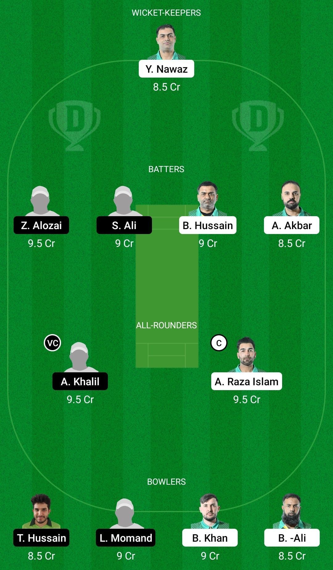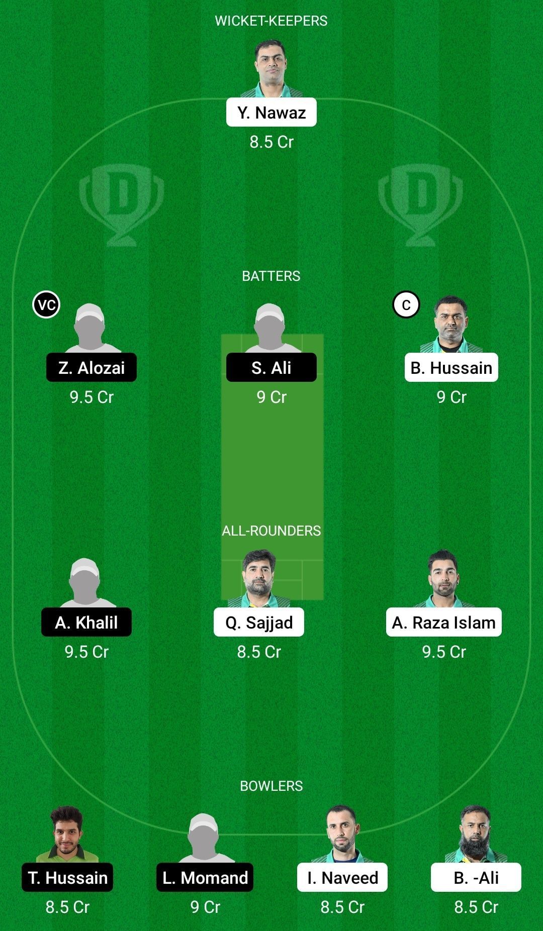 Captain: Babar Hussain. Vice-captain: Ziakhan Alozai.