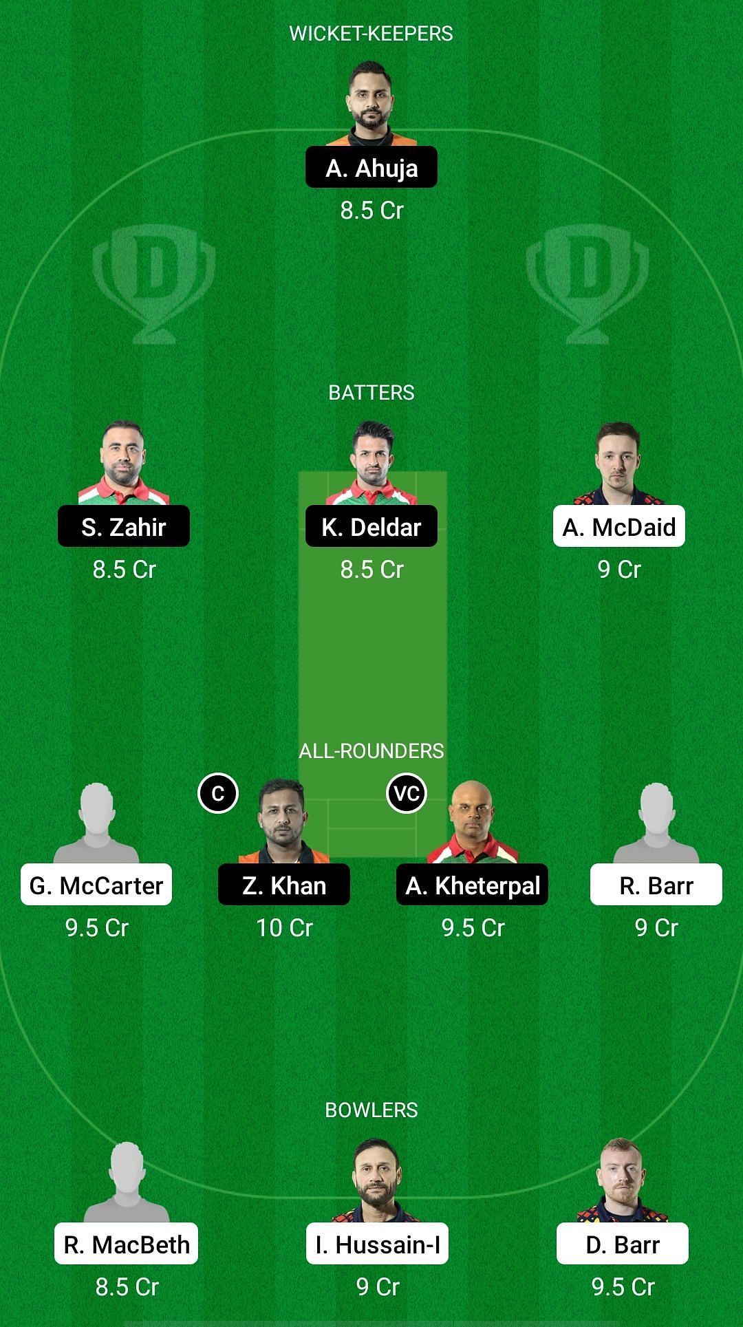 Fantasy Suggestion #1: Stan Ahuja, Zahir Safi, Khaibar Deldar, Adam McDaid, Graeme McCarter, Zeeshan Kukikhel, Abhishek Kheterpal, Harsh Mandhyan, Ryan MacBeth, Iftikhar Hussain, David Barr.