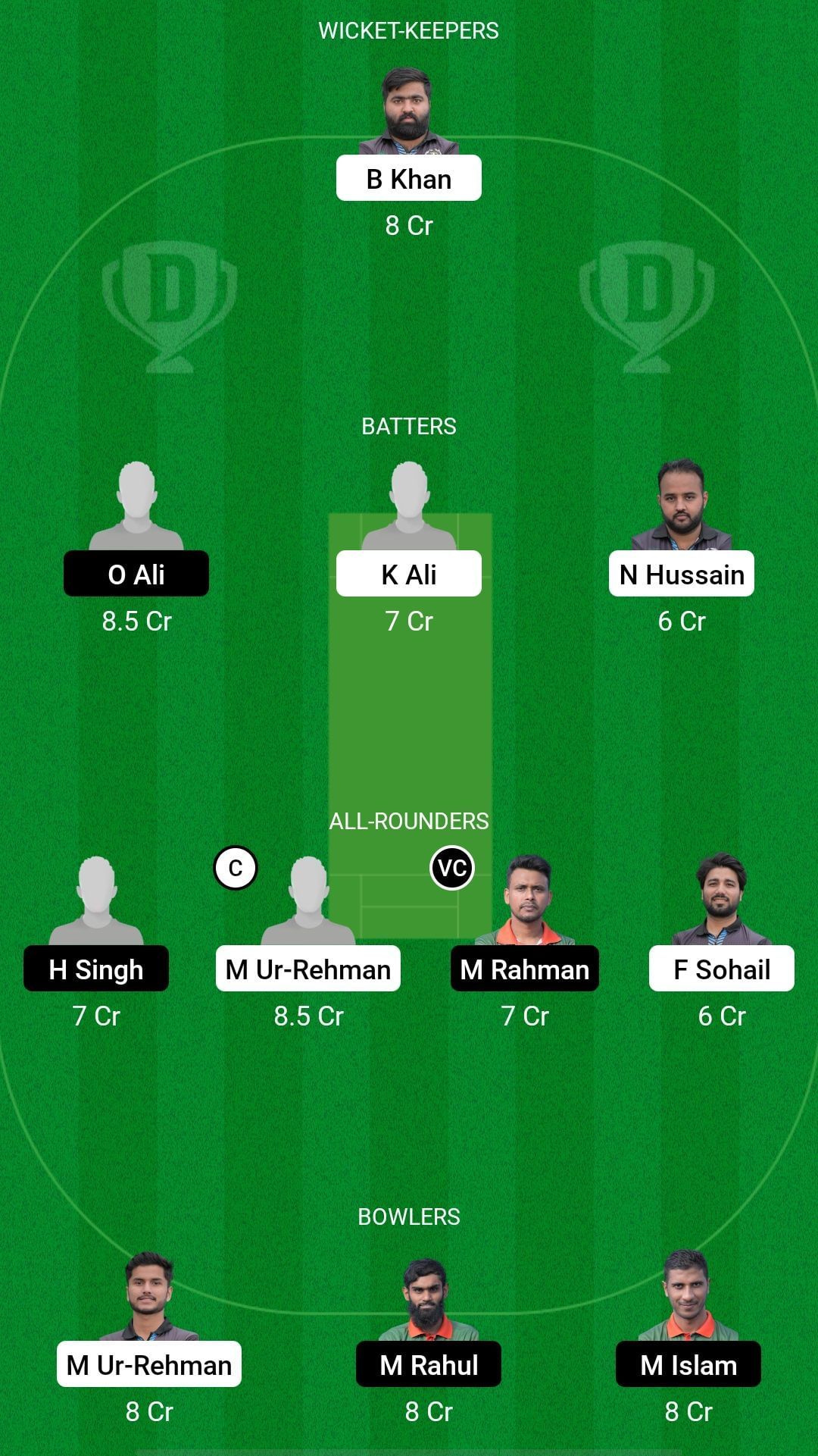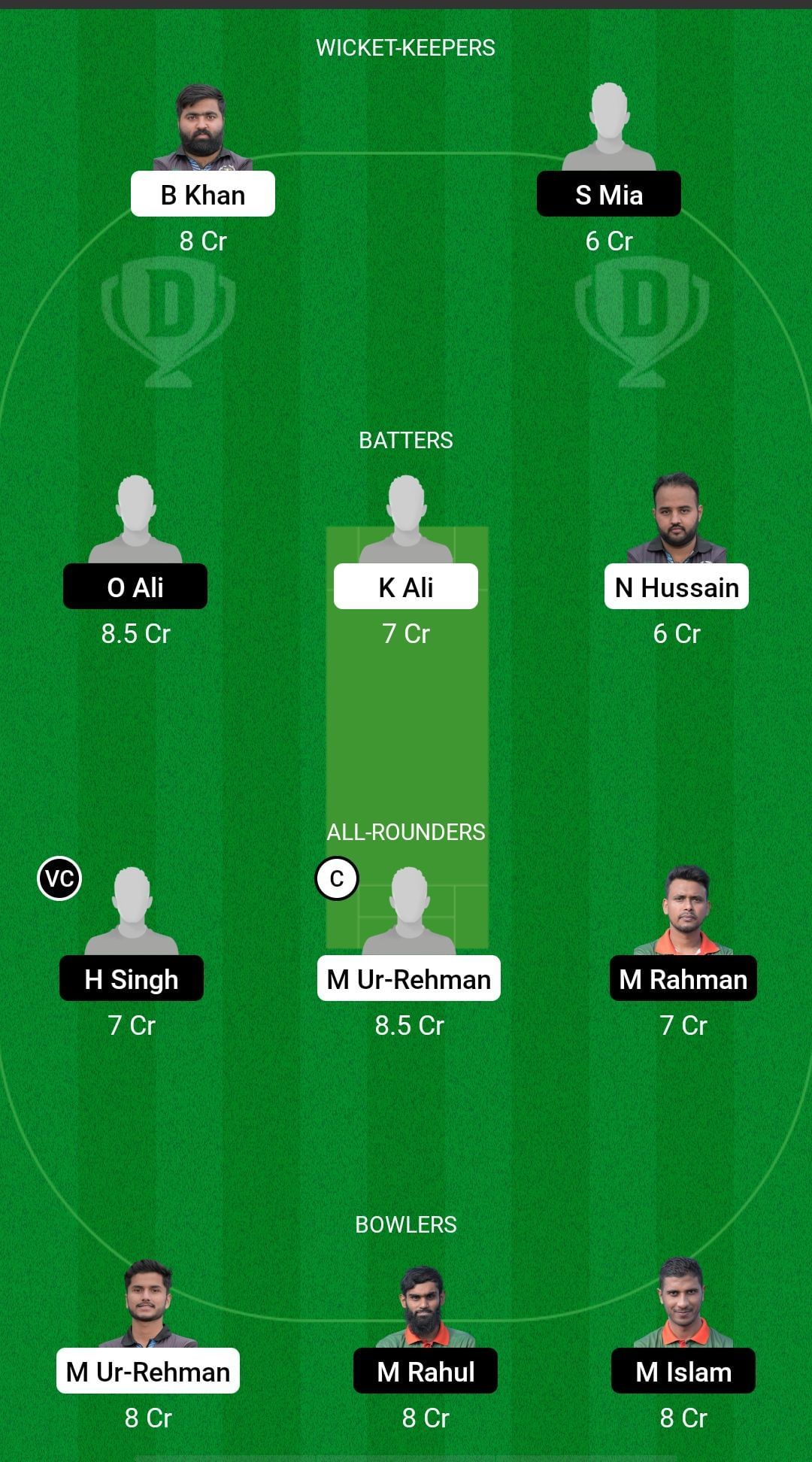 Bowlers: Sami Ur Rehman, MD Rahul, Moynul Islam
