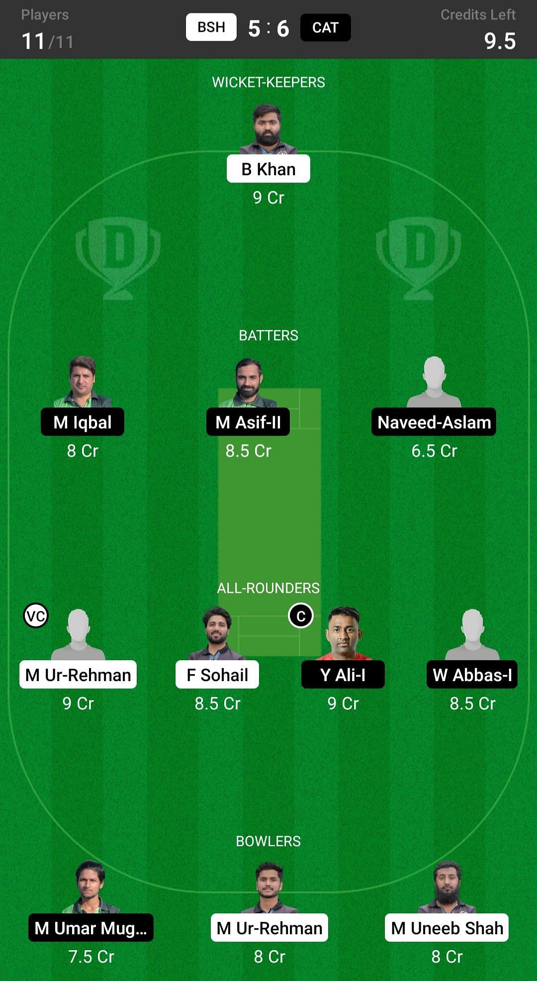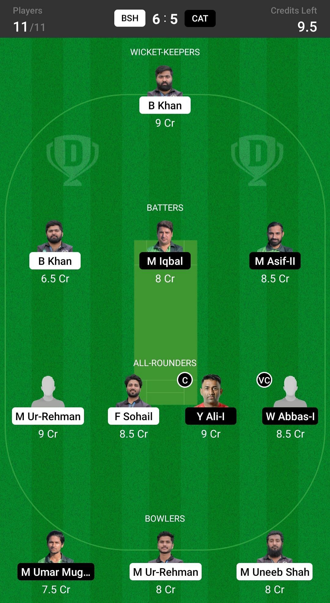 BSH vs CAT match captain and vice-captain choices