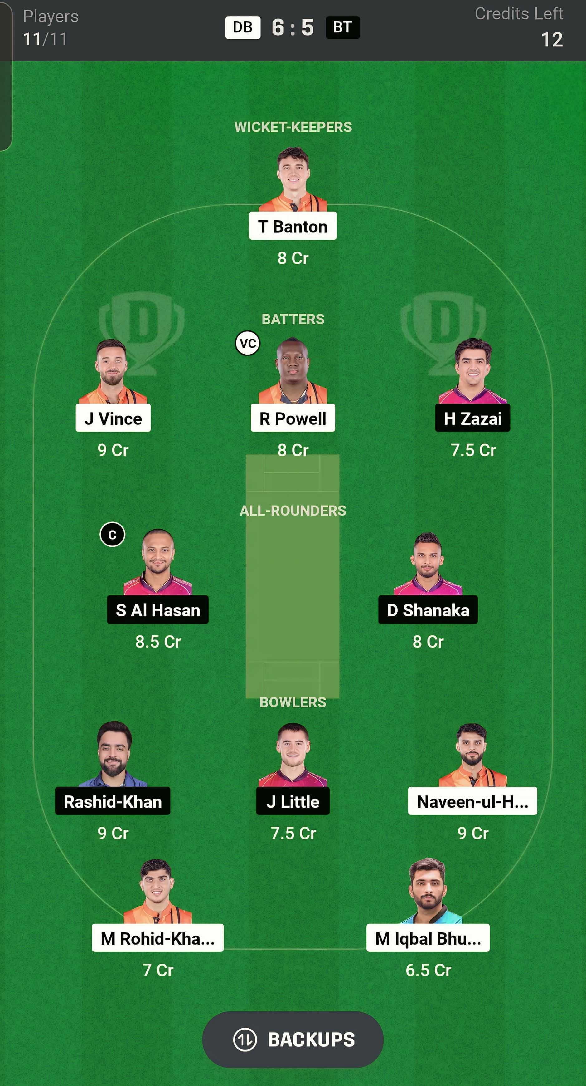 James Vince and Rovman Powell are the two best batter picks for today's Dream11 team. Rovman Powell has already smashed 71 runs in the last two matches. Hazratullah Zazai is another good batter for today's nail-biting match.