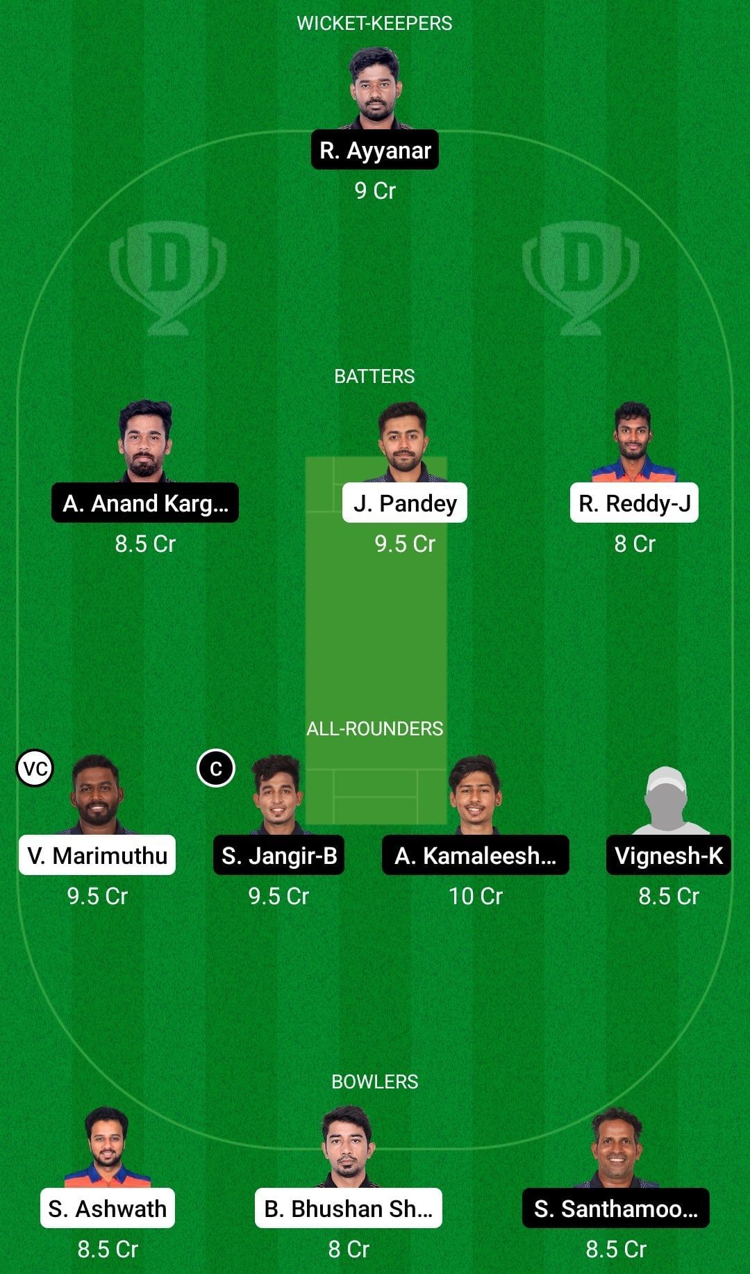 Fantasy Suggestion #1: R Ayyanar, Akash Anand Kargave, Jay Pandey, Rajasekar Reddy J, Vikneshwaran Marimuthu, Satish Jangir B, A Kamaleeshwaran, K Vignesh, S Ashwath, Bharat Bhushan Sharma, SanthaMoorthy.