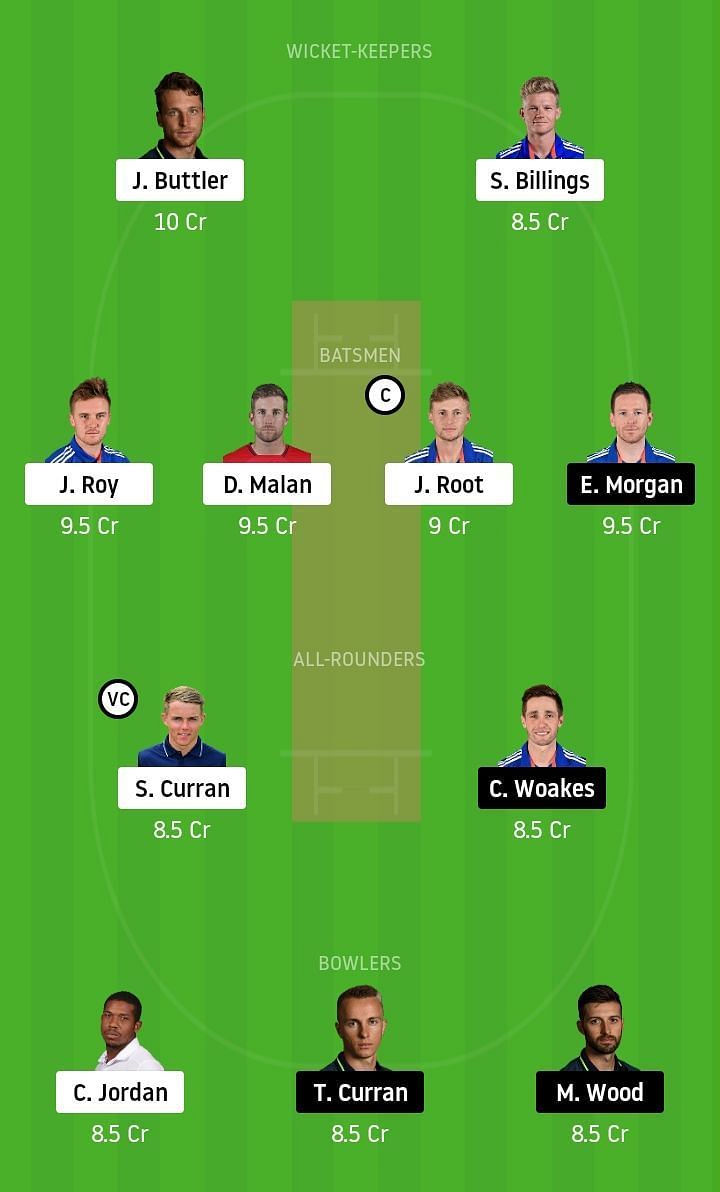 Fantasy Suggestion #1: Jos Buttler, Sam Billings, Jason Roy, Dawid Malan, Joe Root, Eoin Morgan, Sam Curran, Chris Woakes, Chris Jordan, Tom Curran and Mark Wood.