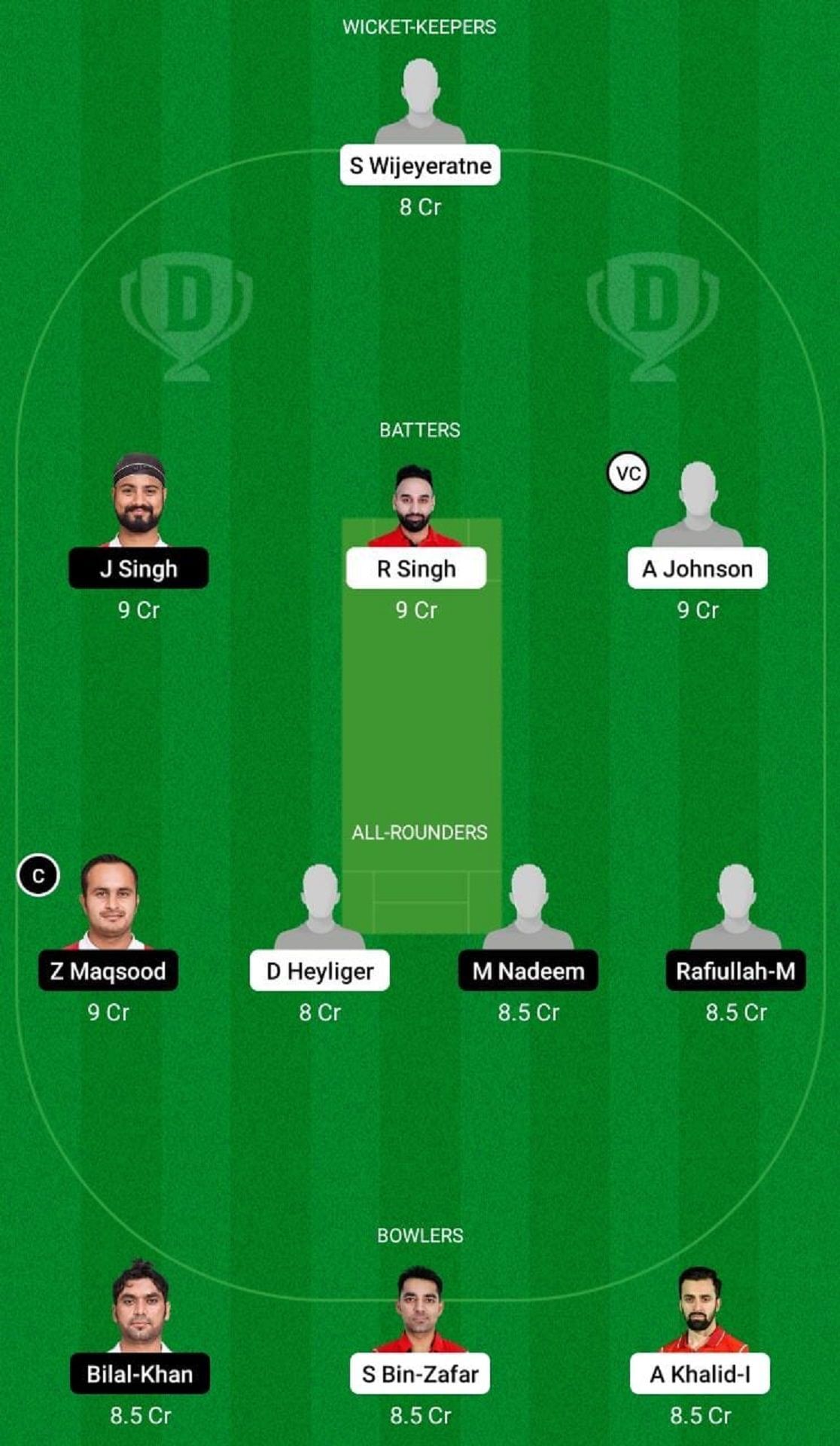 SA Wijeratne, Ravinderpal Singh, Pargat Singh, Aaron Johnson, Matthew Spoors, Harsh Thaker, Ammar Khalid, Kaleem Sana, Dillon Heyliger, Saad Bin Zafar (C), N Dutta