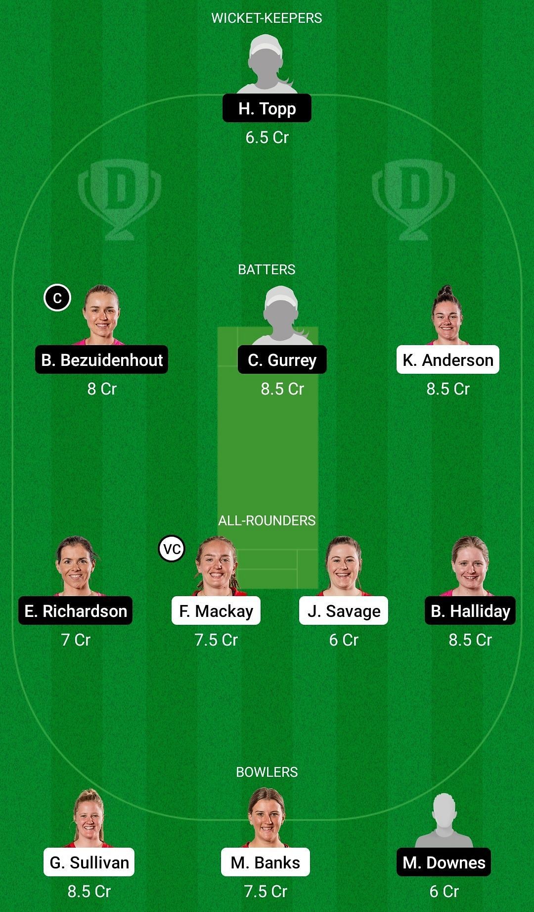 Both teams have some quality all-rounders who will be key picks. Thus, the likes of Eimear Richardson, Brooke Halliday, Frances Mackay, and Kate Anderson will be the ones to watch out for in the CM-W vs NB-W game.