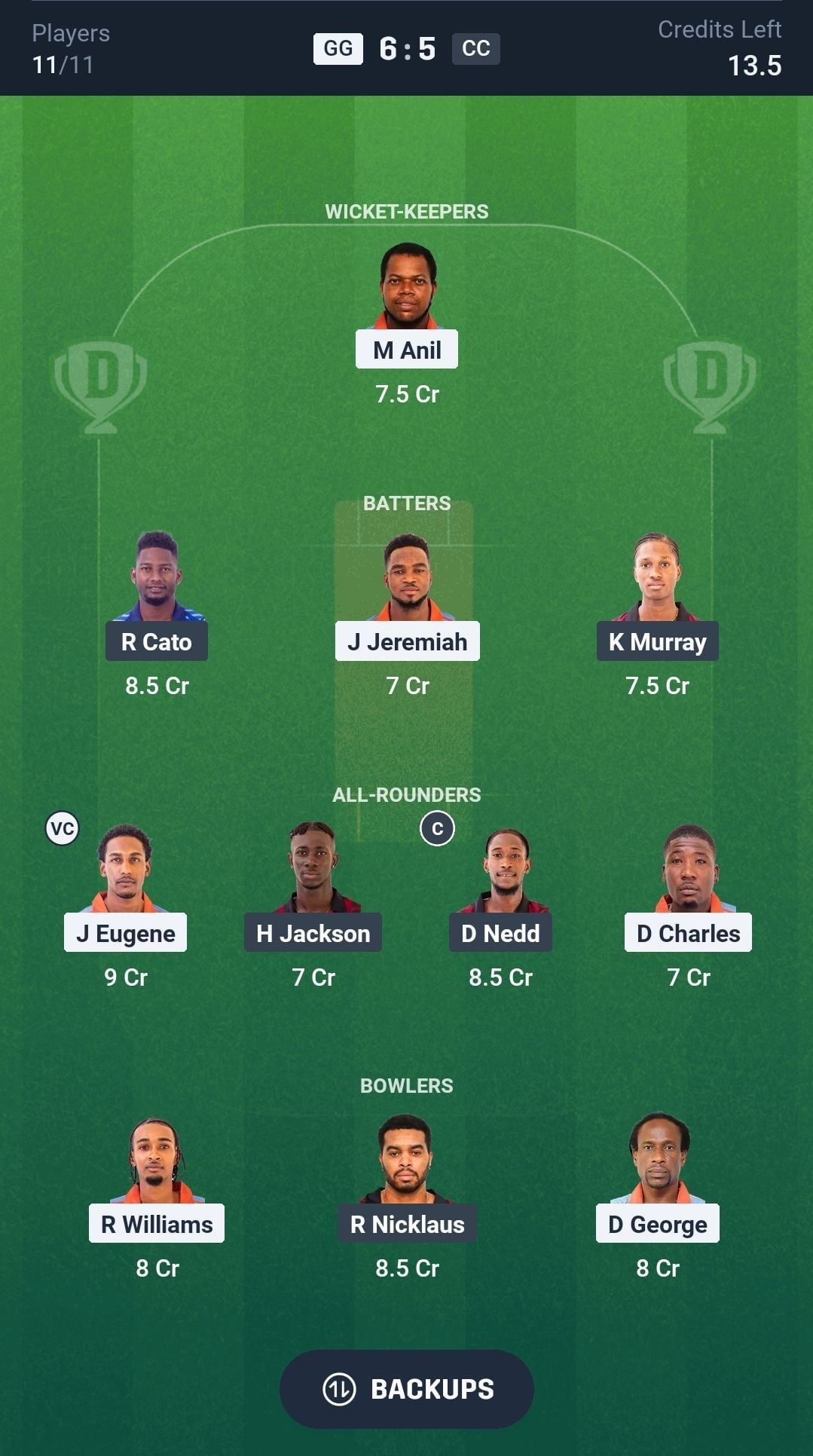 All-rounders: J Eugene, D Nedd, D Charles, H Jackson