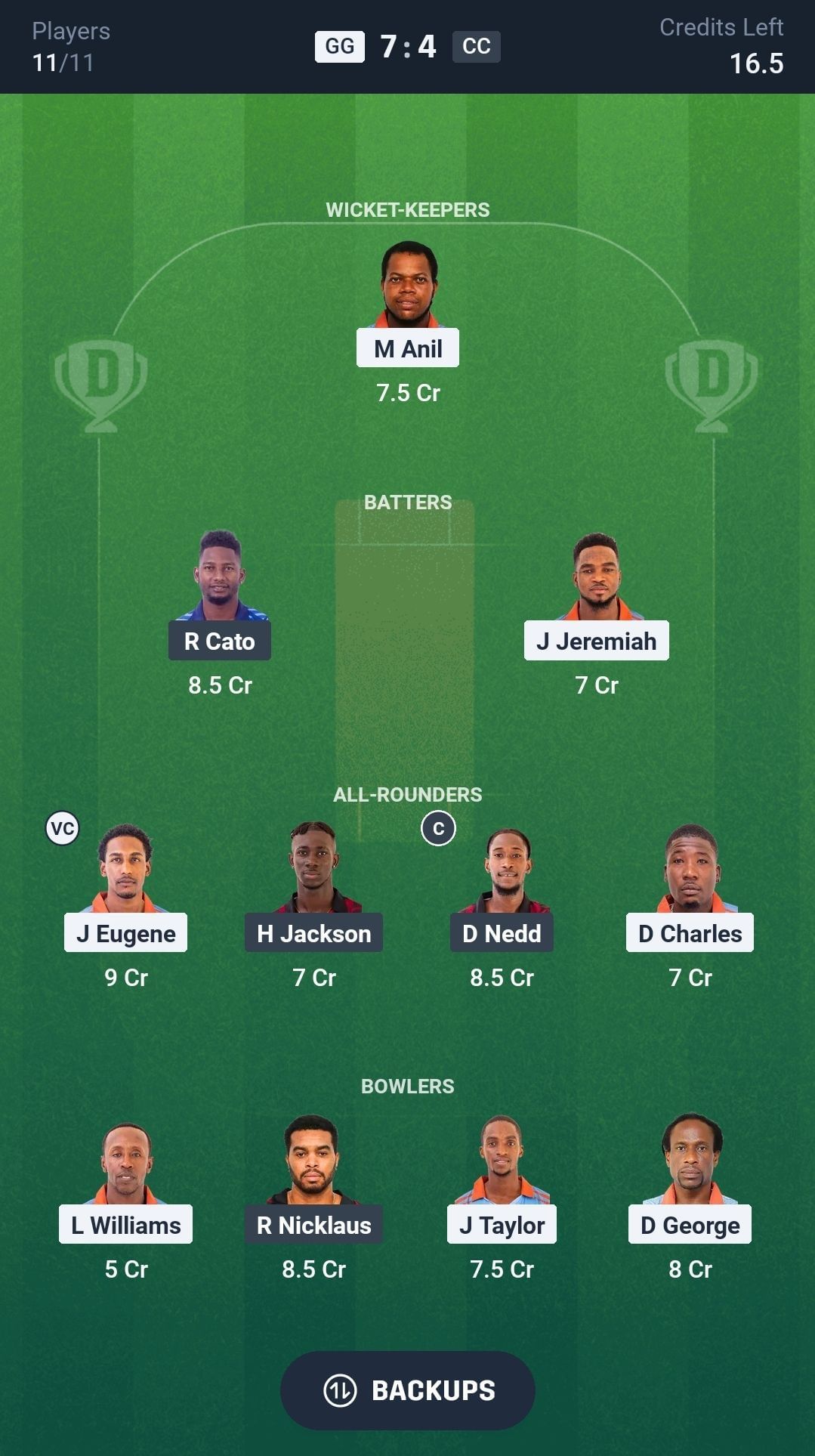 J Eugene and D Nedd are the best all-rounders for the Dream11 team. Both players are crucial for today's match. D Nedd will bat in the top order and complete his quota of overs in today's match. He has smashed 207 runs and taken 5 wickets in the last seven matches. H Jackson is another good all-rounder for today's match.