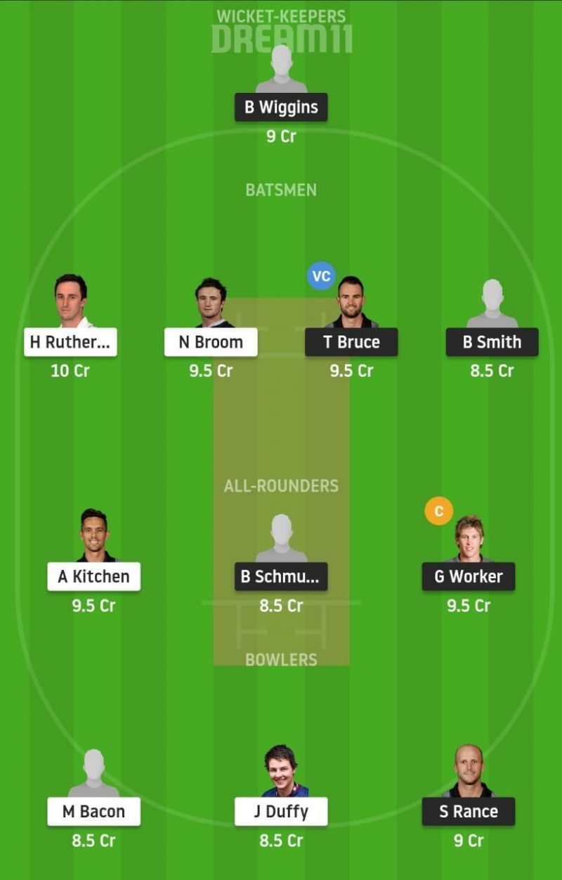Fantasy Suggestion #1: Bayley Wiggins, Hamish Rutherford, Tom Bruce, Ben Smith, Neil Broom, Anaru Kitchen, George Worker, Brad Schmulian, Seth Rance, Jacob Duffy, Matthew Bacon.
