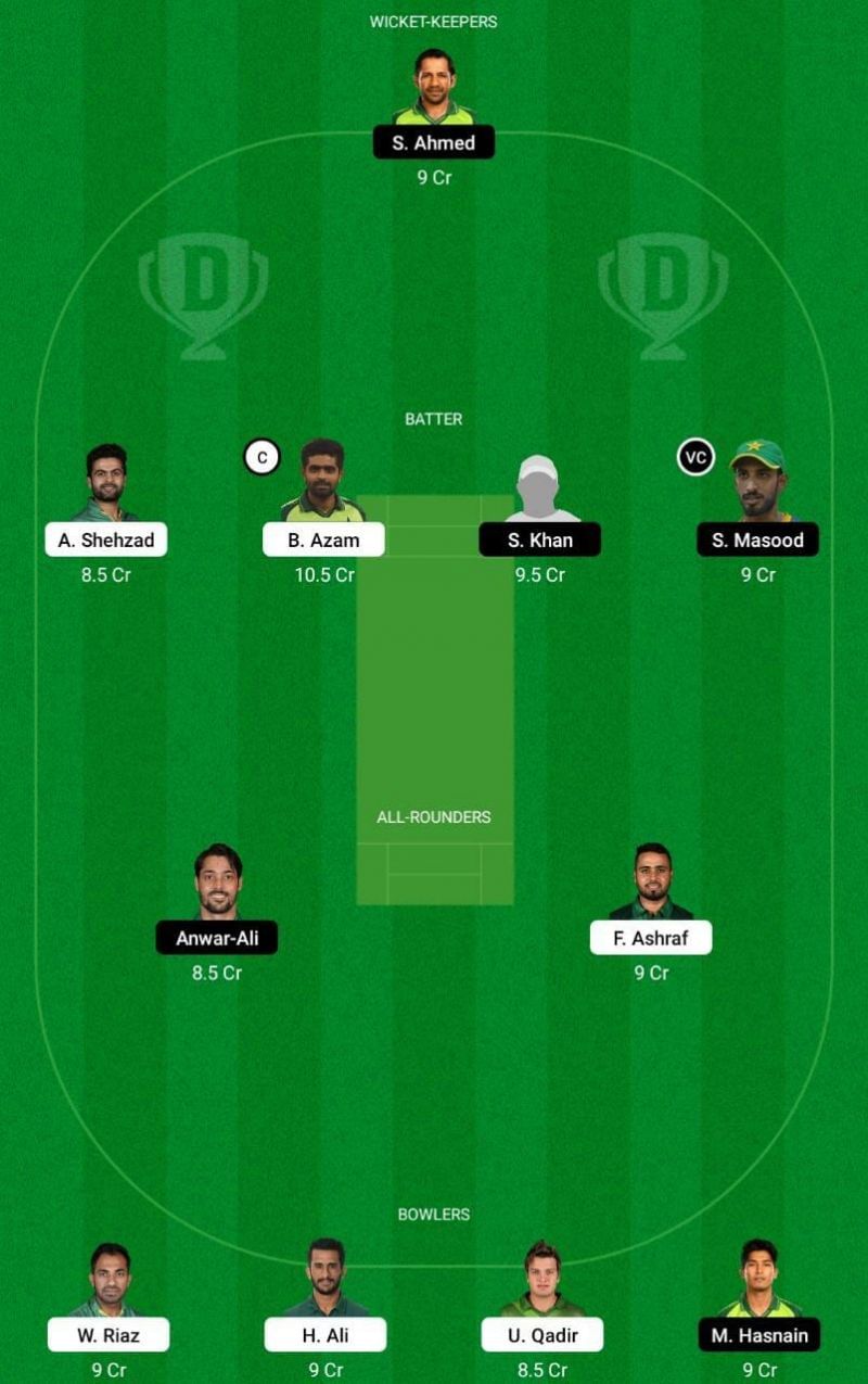 Fantasy Suggestion #1: S Ahmed, B Azam, S Khan, A Shehzad, S Masood, A Ali, F Ashraf, W Riaz, H Ali, M Hasnain and U Qadir