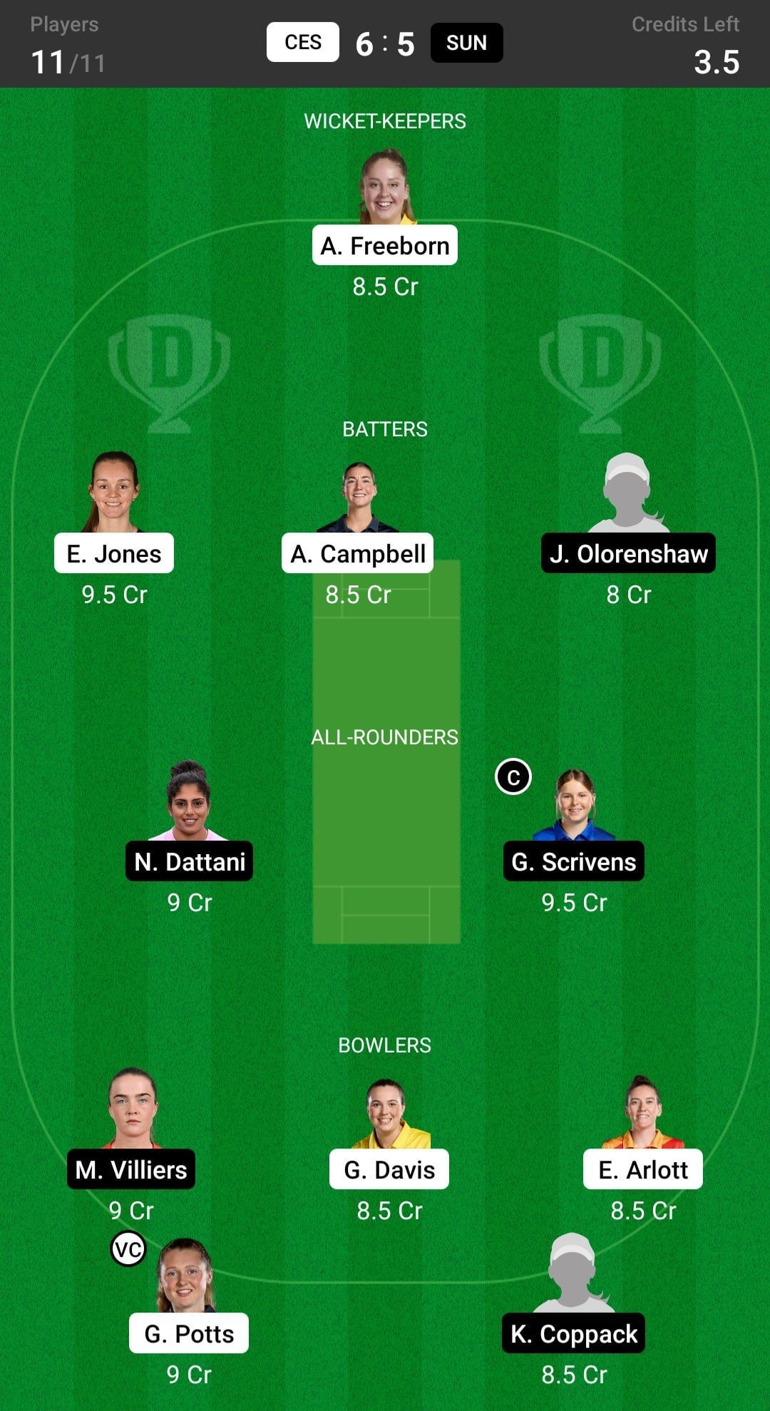 G Scrivens is one of the best all-rounder picks in the Sunrisers squad who will bowl in death overs and bat in the top order. Since the pitch is decent, she can be a good captaincy pick for the grand leagues. She has already smashed 236 runs and taken 11 wickets in the last five games.