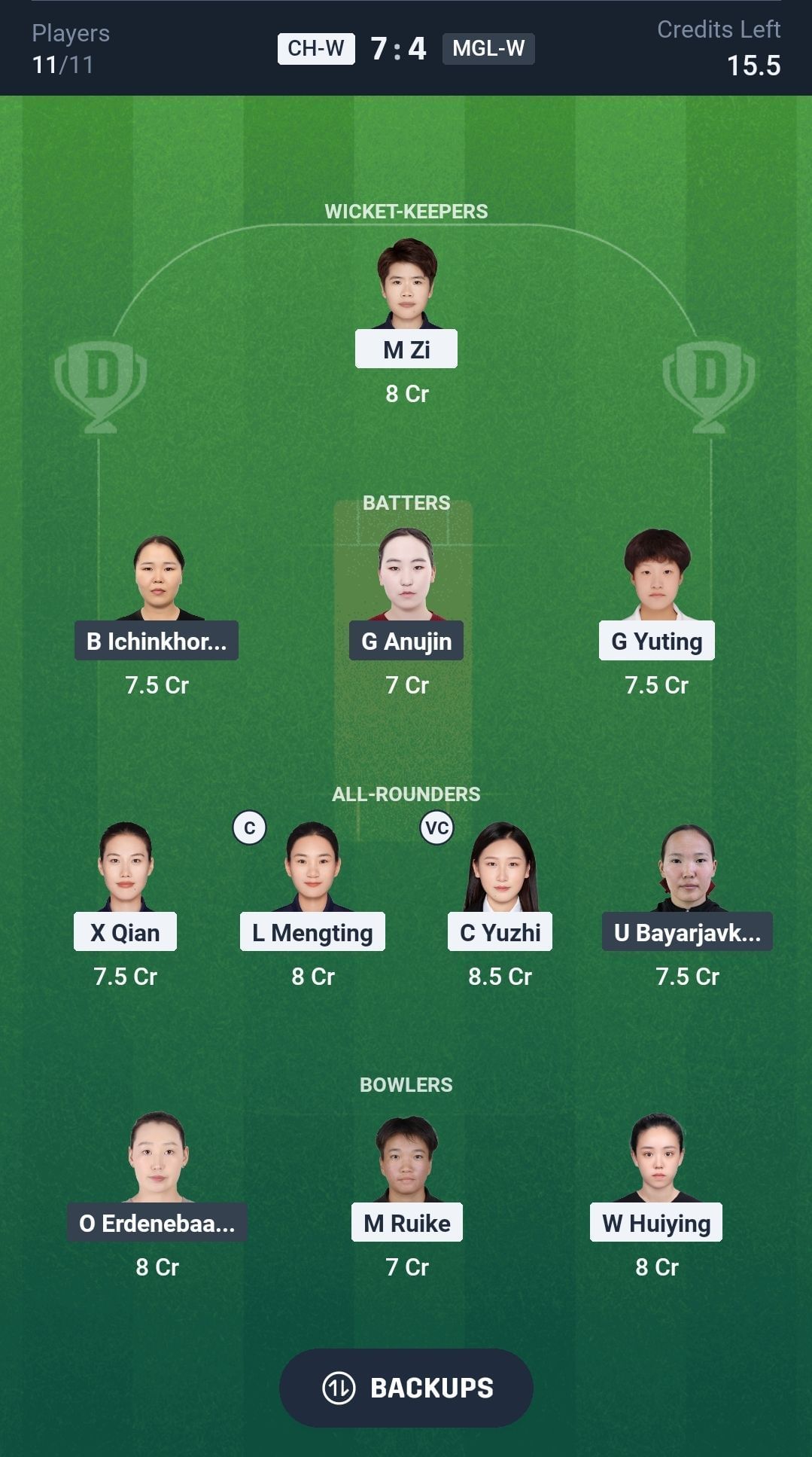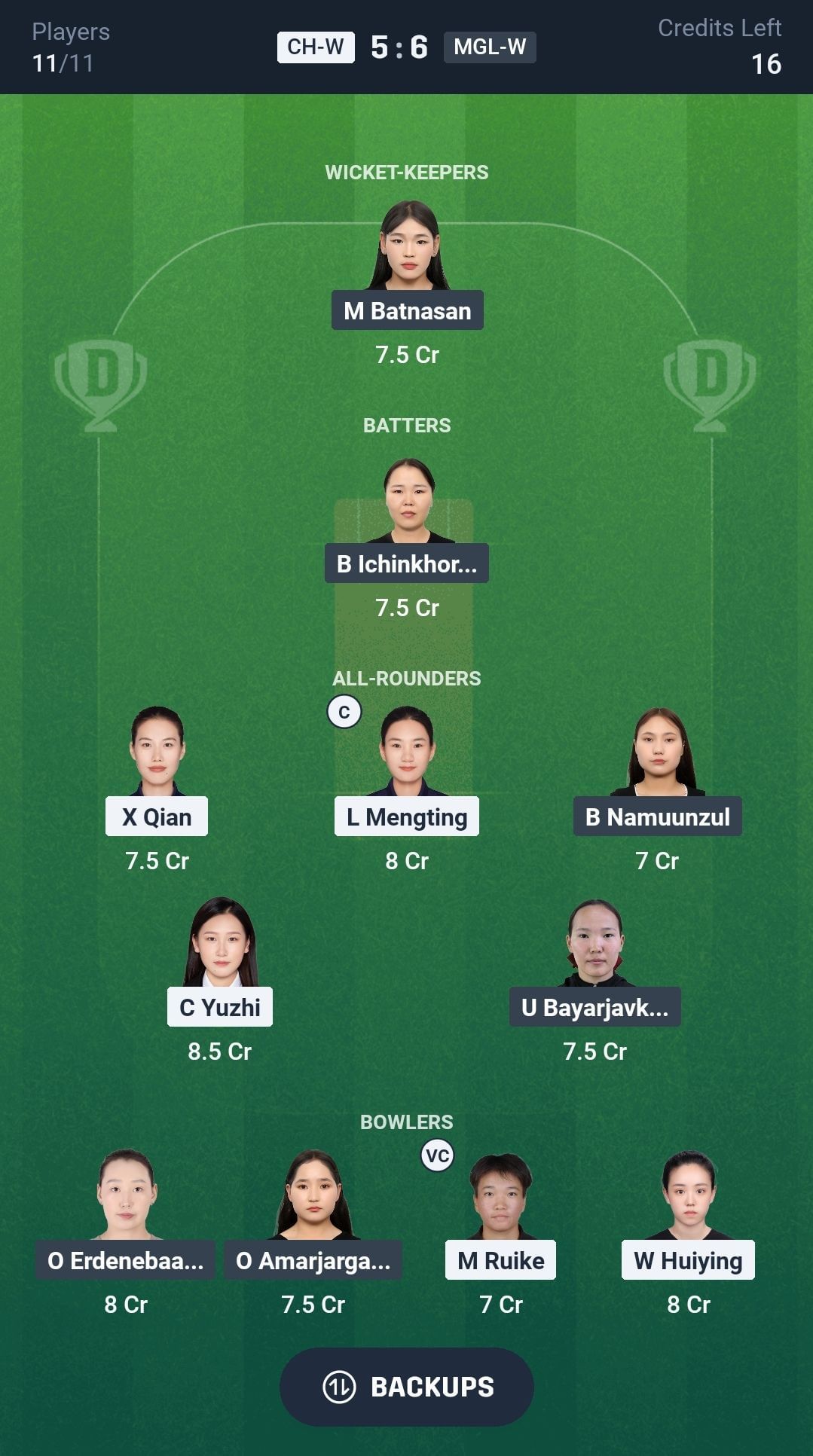 B Ichinkhorloo and G Yuting are the two best batsmen picks for today's Dream11 team. B Ichinkhorloo will bat in the top order and is in top-notch form. G Anujin is another good batter pick for today's match.