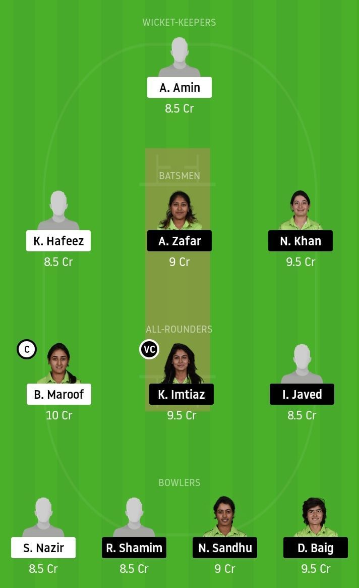 Captain: Ayesha Zafar Vice-captain: Fathima Sana