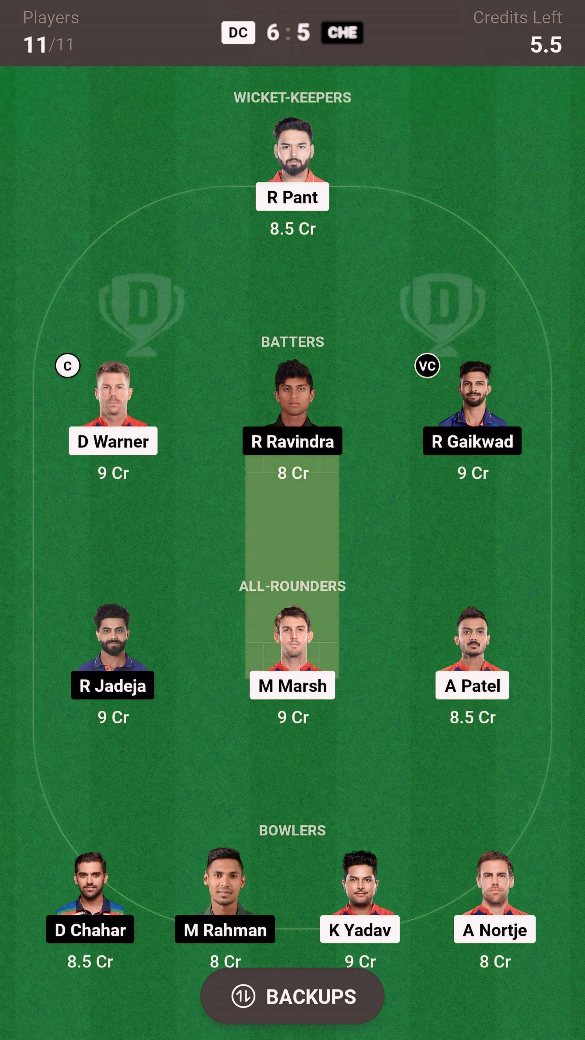 Batters: R Gaikwad, S Dube, R Ravindra, D Warner