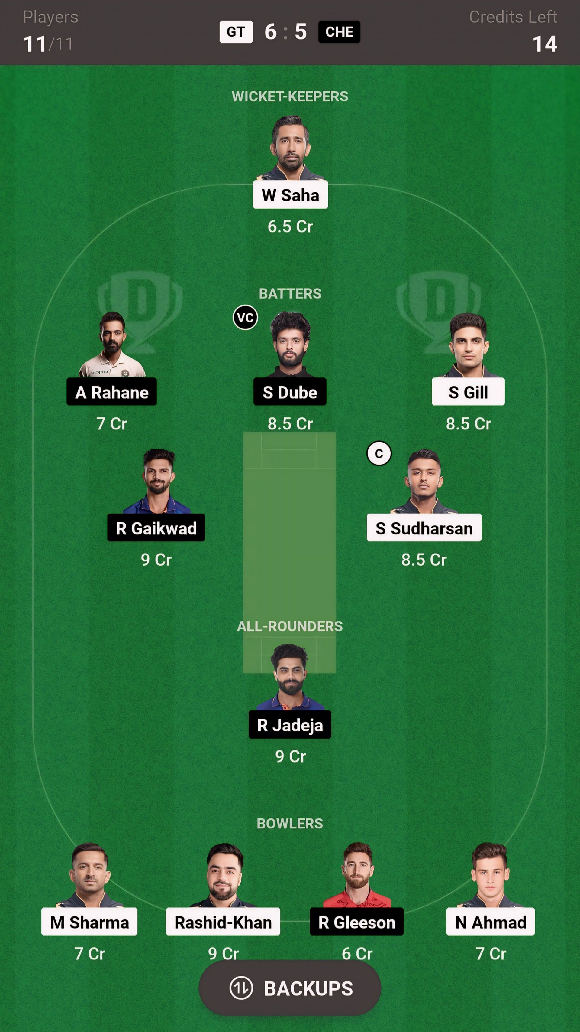Batters: S Sudharsan, S Gill, R Gaikwad, S Dube, A Rahane