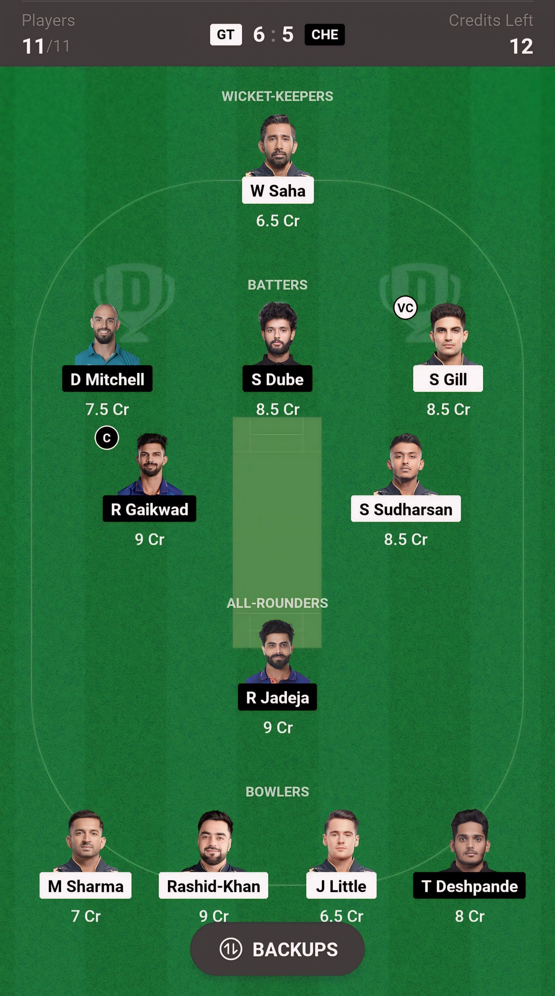 Batters: S Sudharsan, S Gill, R Gaikwad, S Dube, D Mitchell