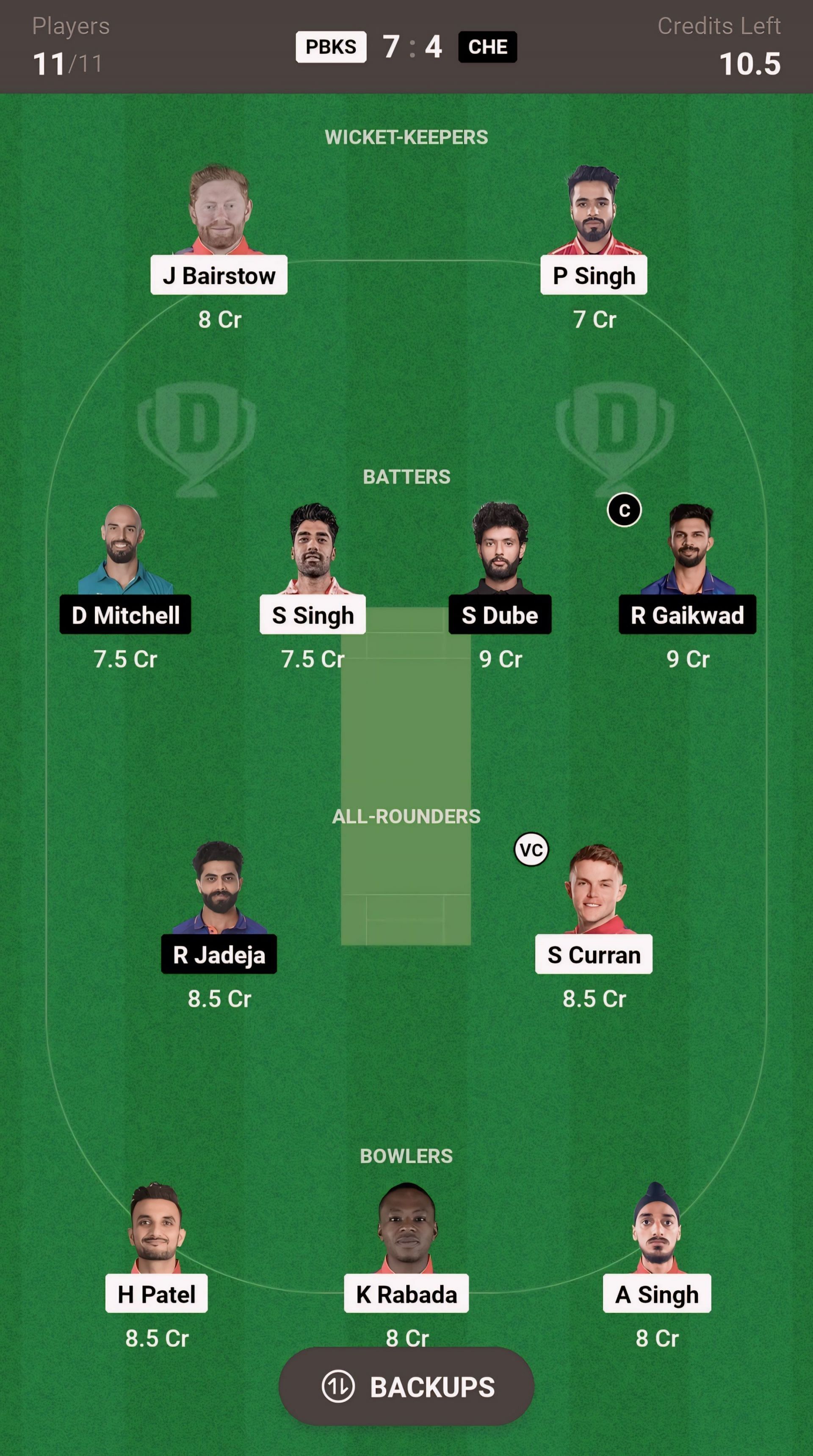 Chennai Super Kings vs Punjab Kings Dream11 Prediction Today, Grand League