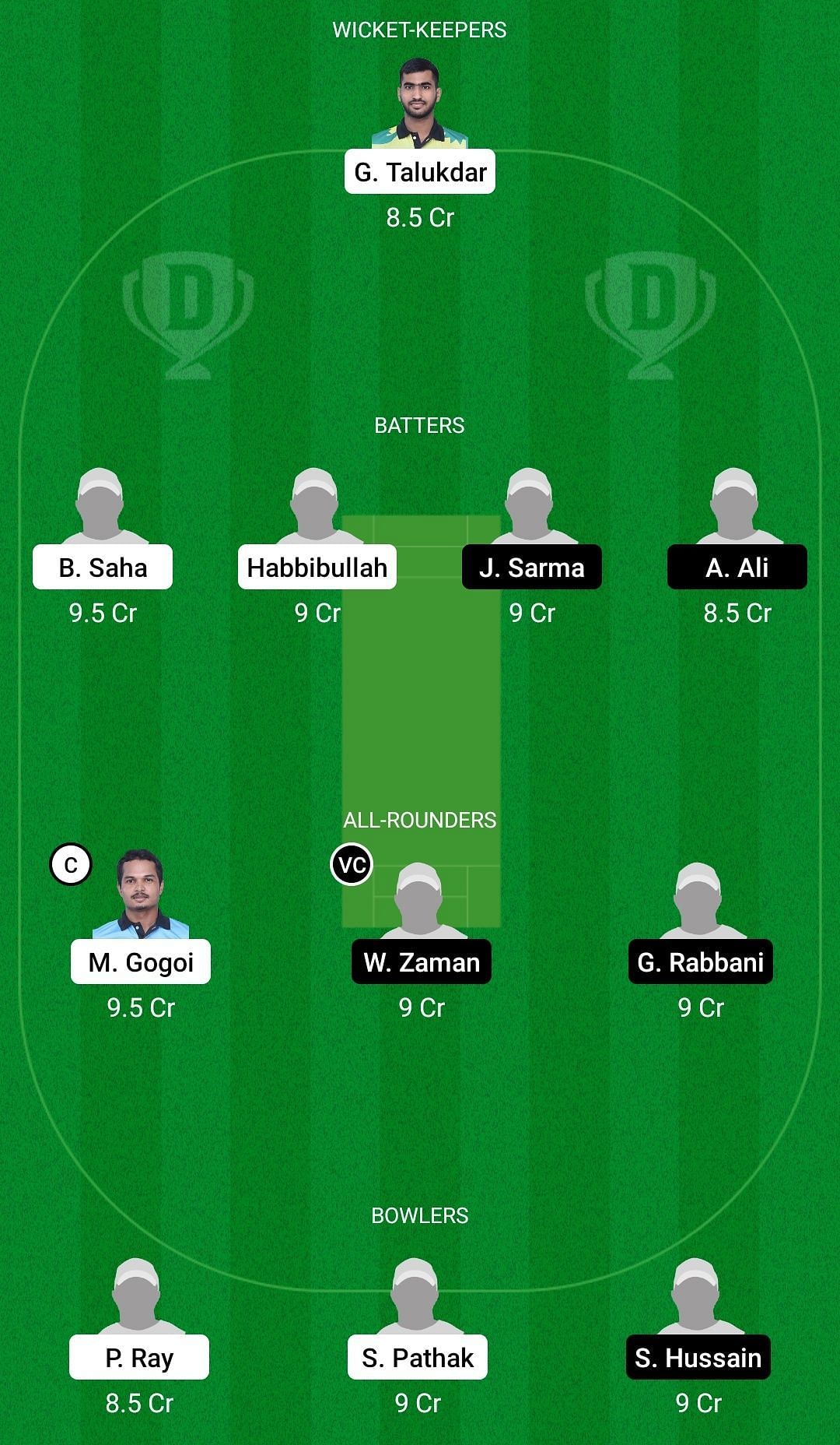 Fantasy Suggestion #1: Gaurav Talukdar, Bishal Saha, Habbibullah, Joges Sarma, Ahar Ali, Manashjyoti Gogoi, Wahedus Zaman, Golam Rabbani, Pritish Ray, Sanjib Pathak, Saddam Hussain.