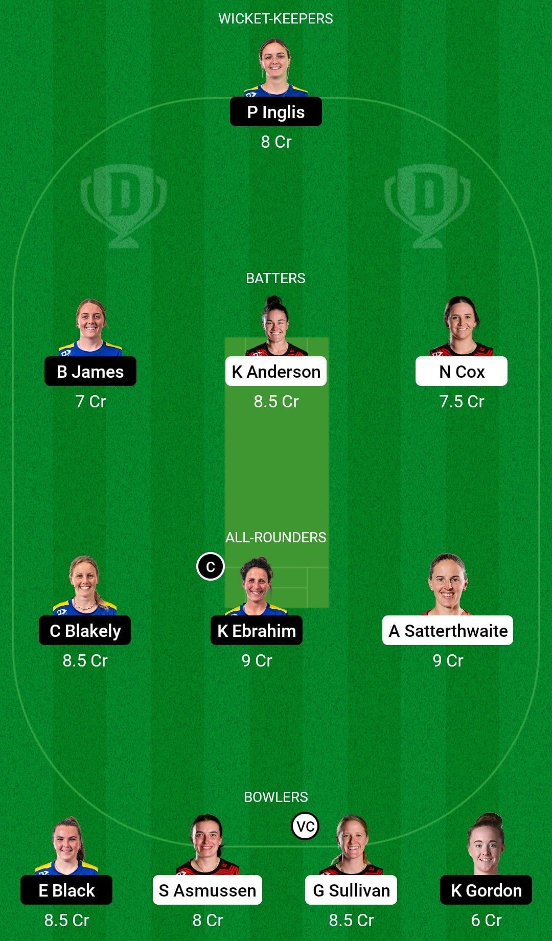 Bowlers: Emma Black, Sarah Asmussen, Gabby Sullivan (vc), Kirstie Gordon