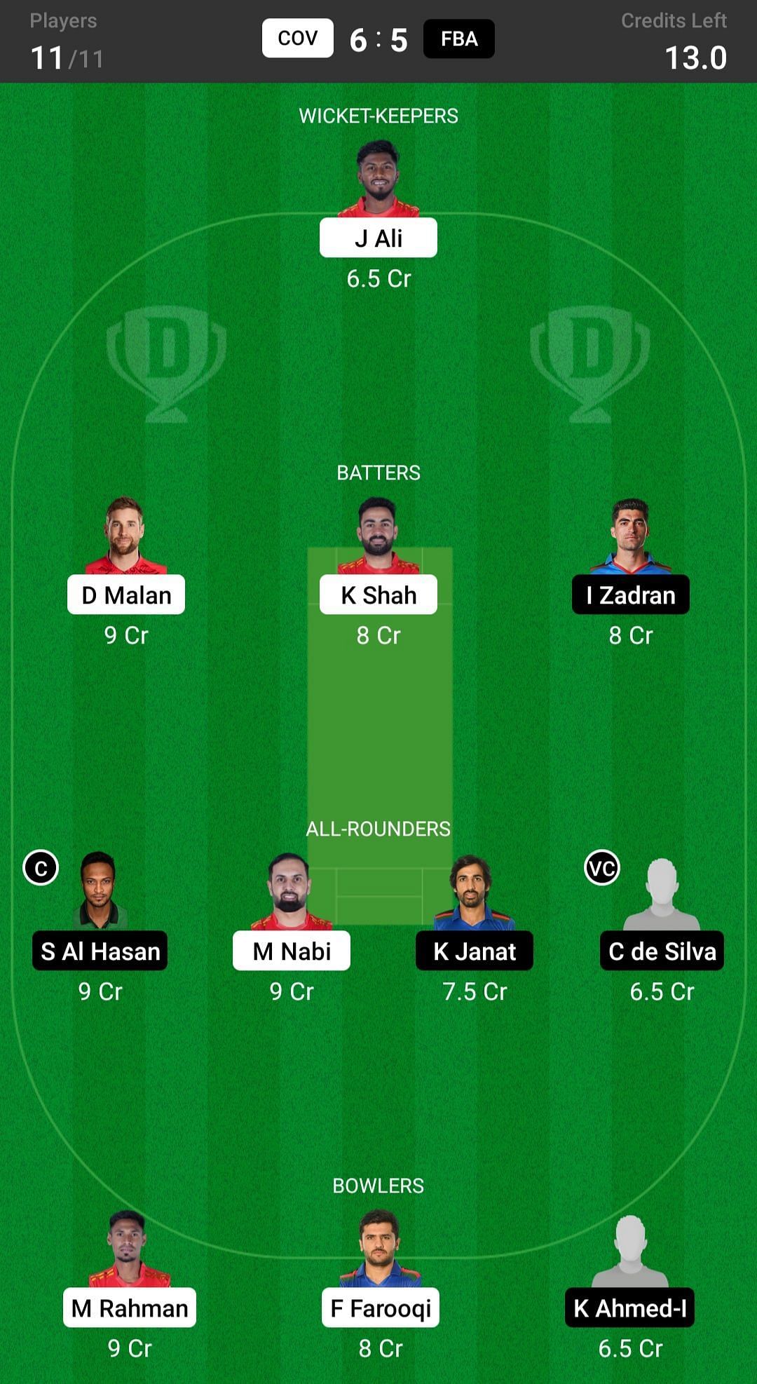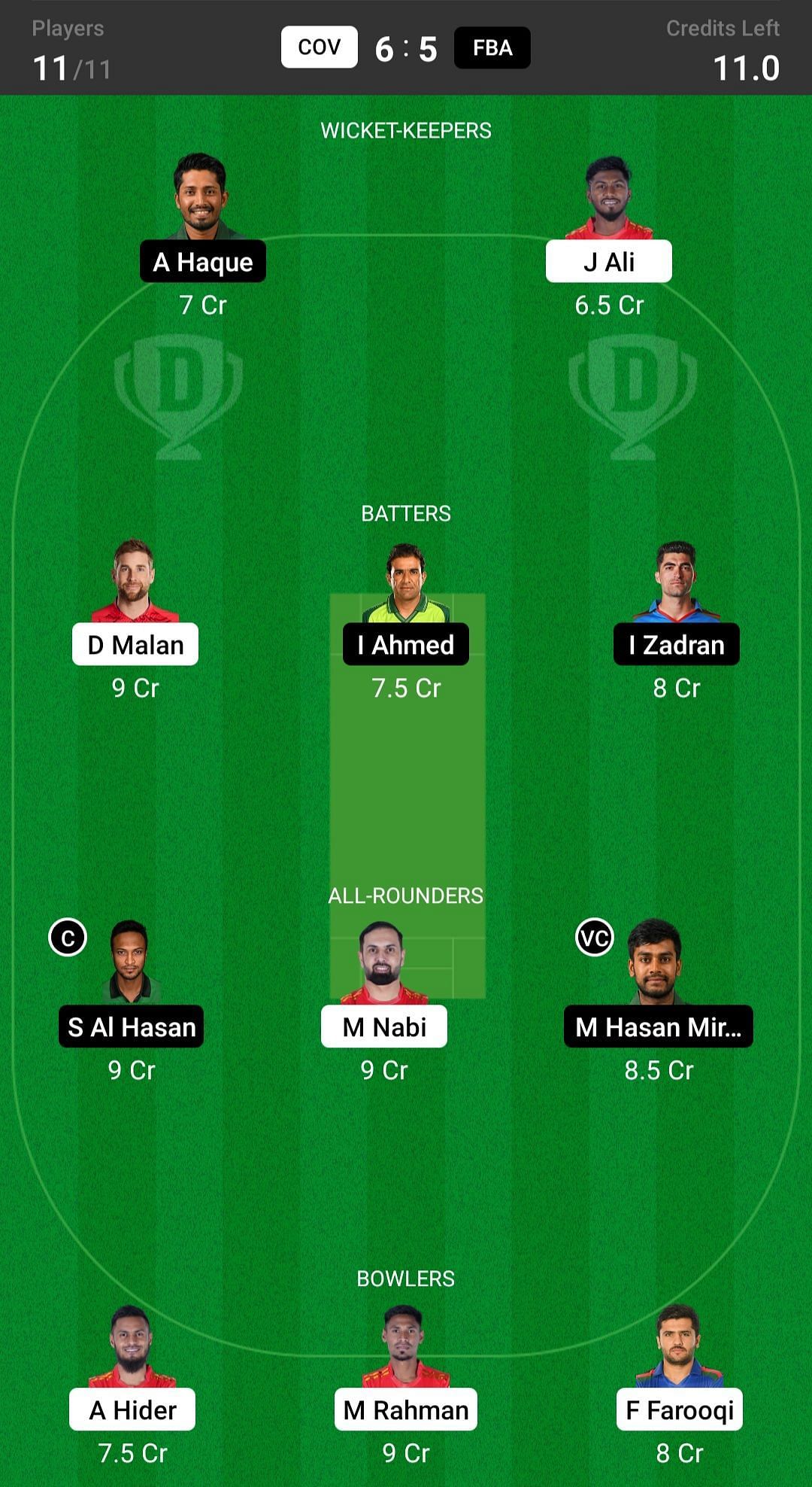 M Nabi and S Al Hasan are the best all-rounder picks for the Dream11 team as they are batting in the top order and also completing their quota of overs. M Hasan Miraz is another good pick for today's Dream11 team.