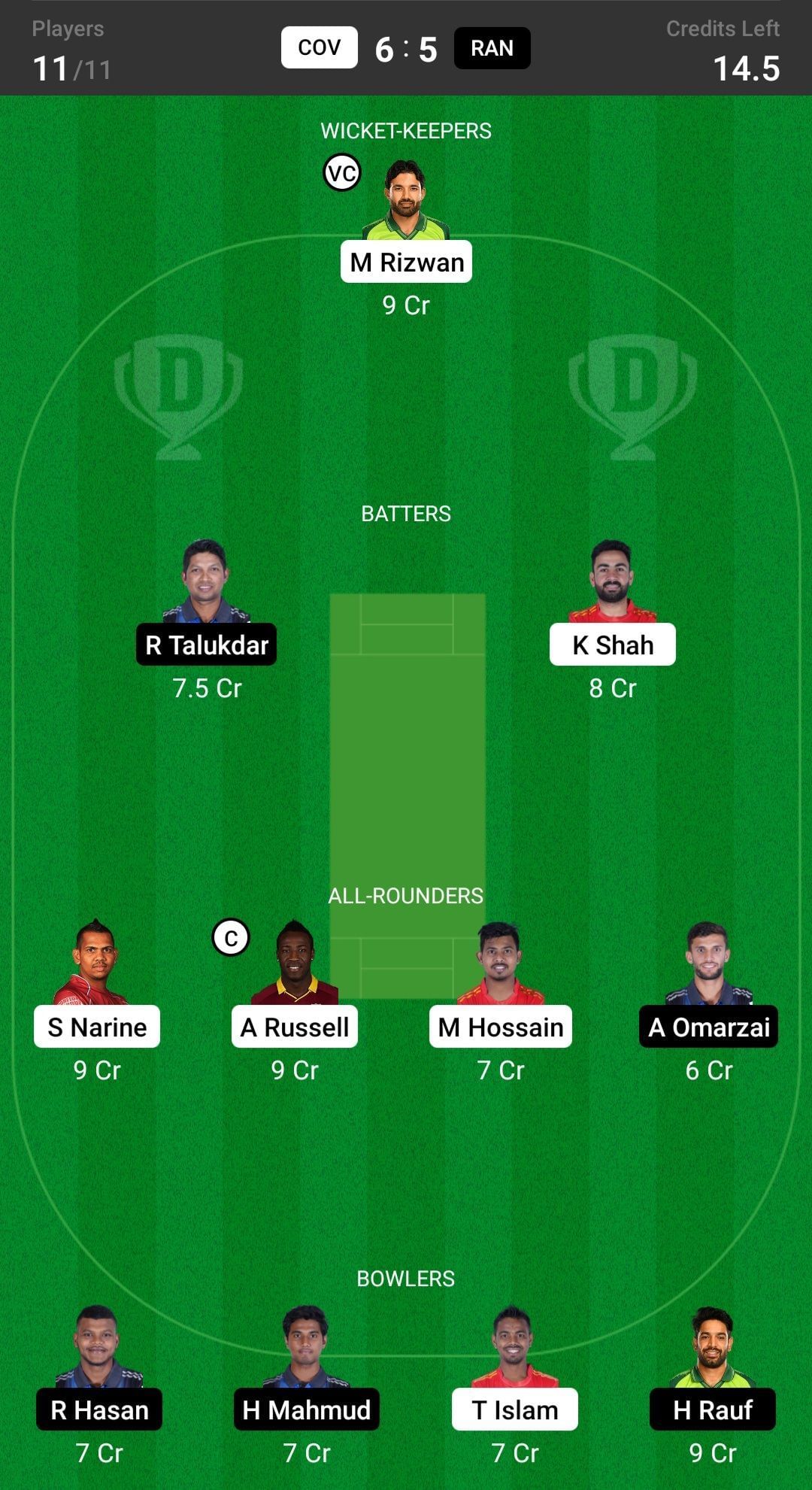 COV vs RAN match captain and vice-captain choices