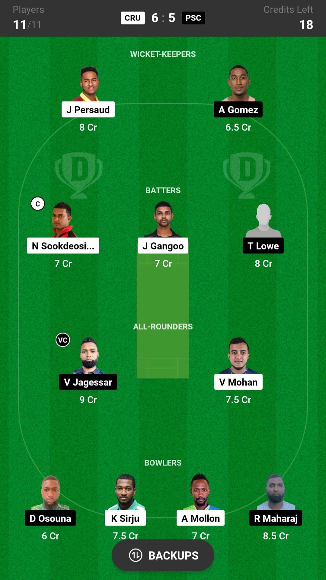 Ahead of this exciting match, here's all you need to know about the CRU vs PSC Dream11 Prediction, today's playing 11s, fantasy cricket tips, best player picks and the pitch report.