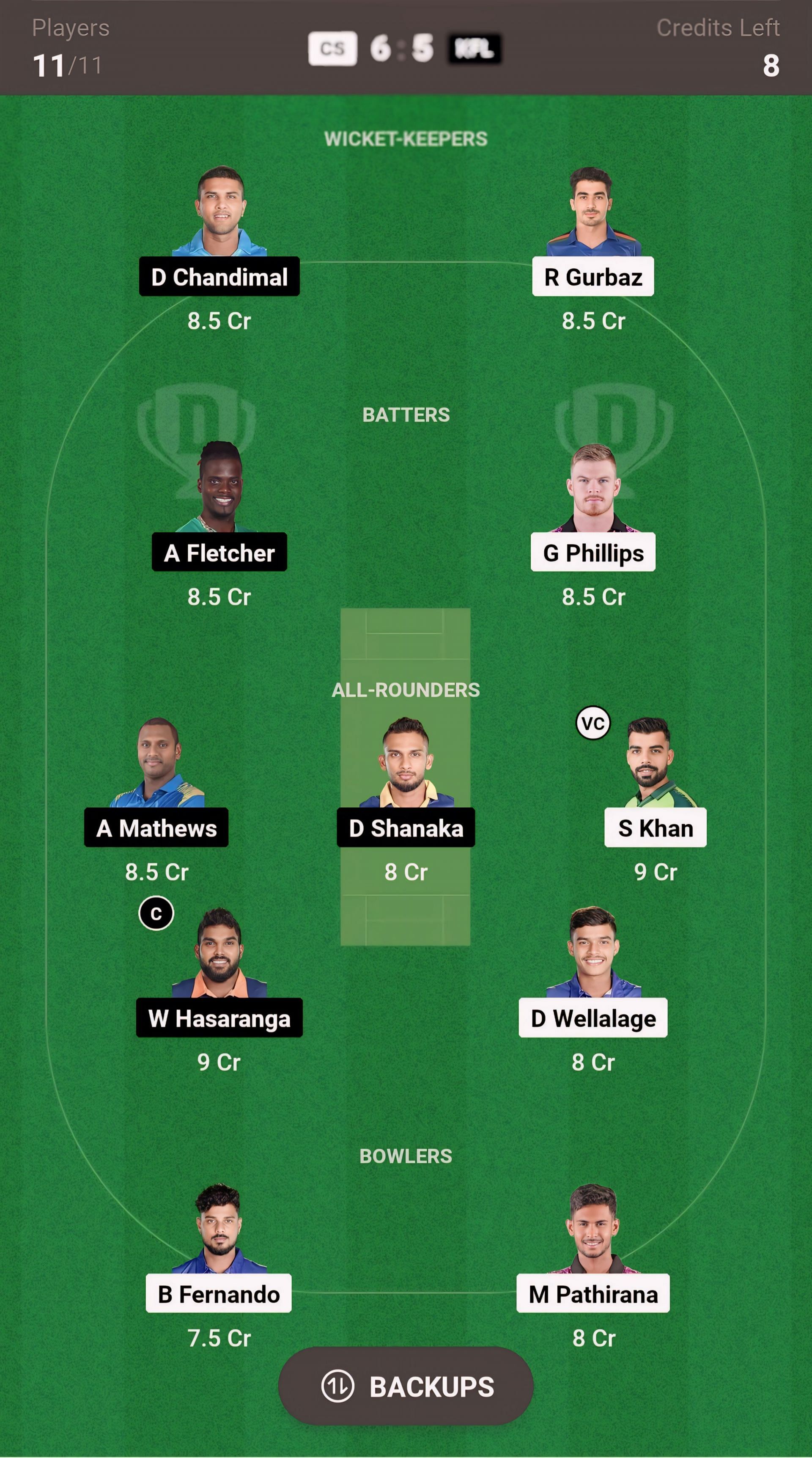 CS vs KFL match captain and vice-captain choices