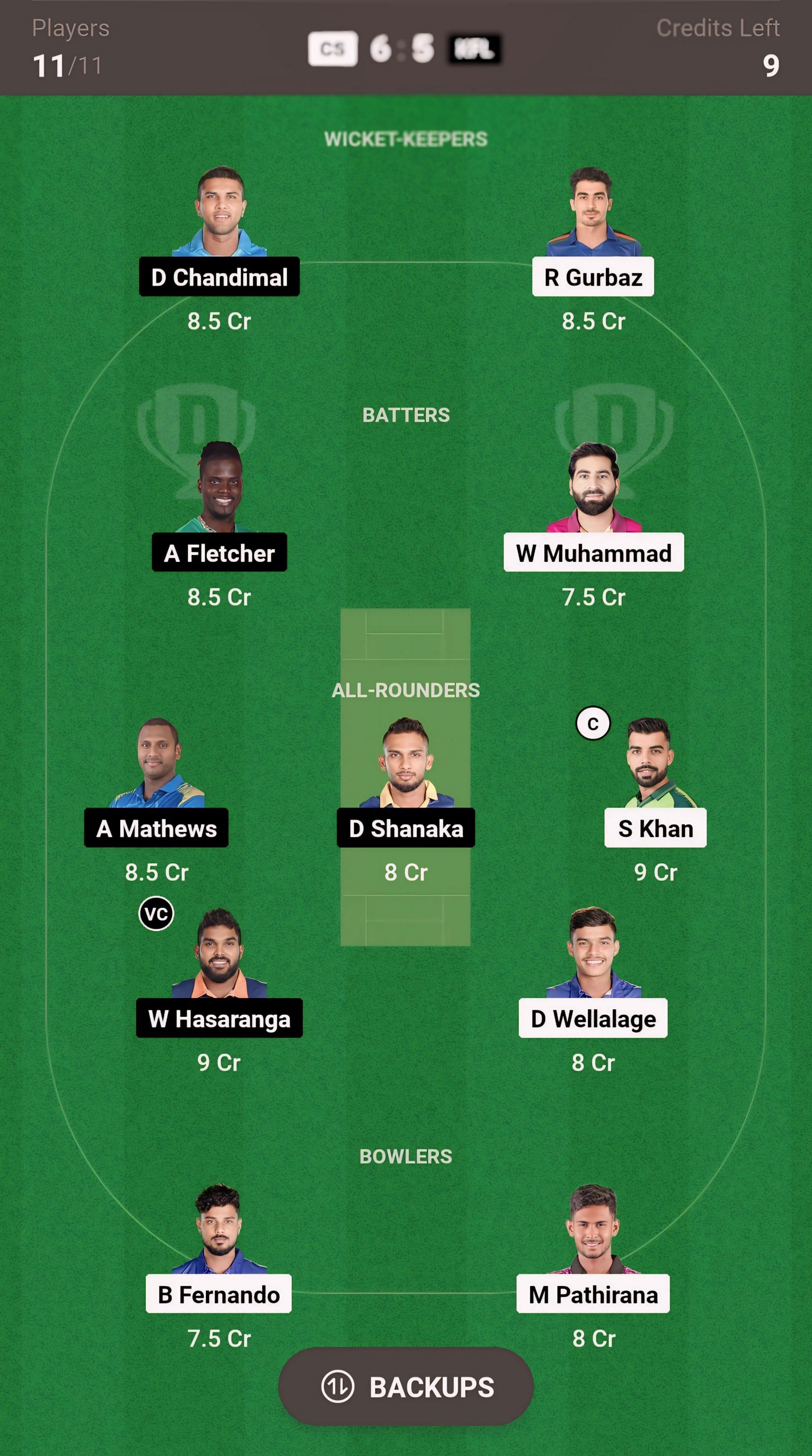 Wicket-keeper: D Chandimal, R Gurbaz