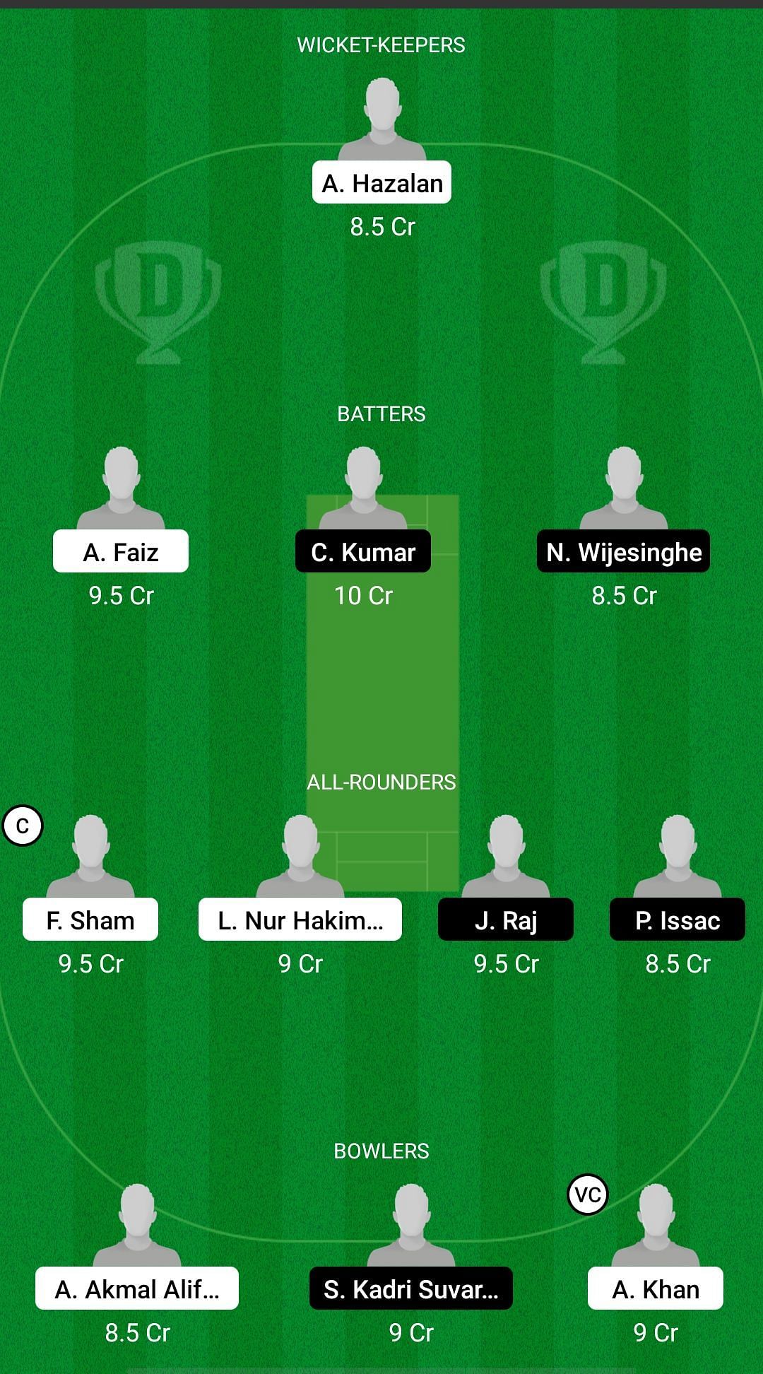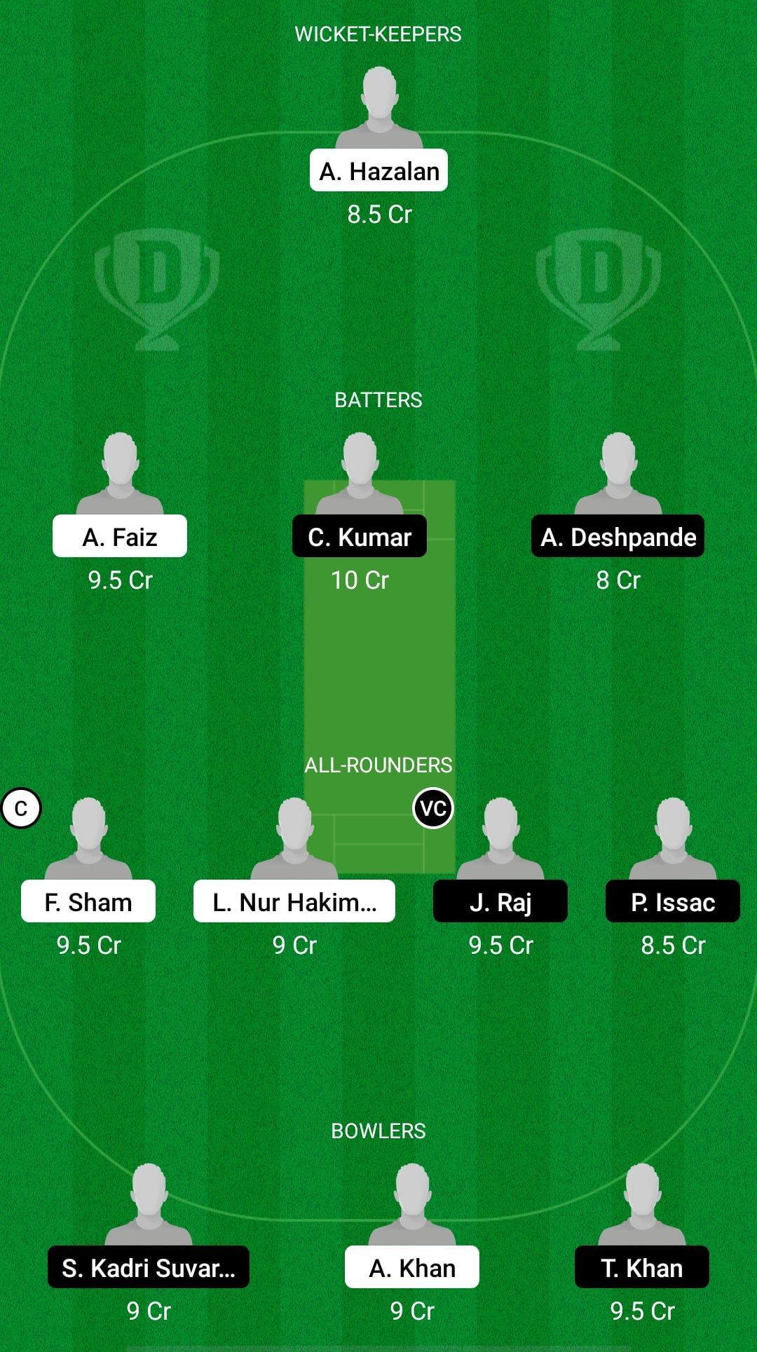 Captain: Fitri Sham. Vice-captain: Jerin Raj Pankiras.
