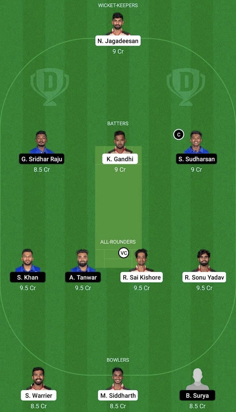 Captain: Sai Sudharsan. Vice-captain: R Sai Kishore.