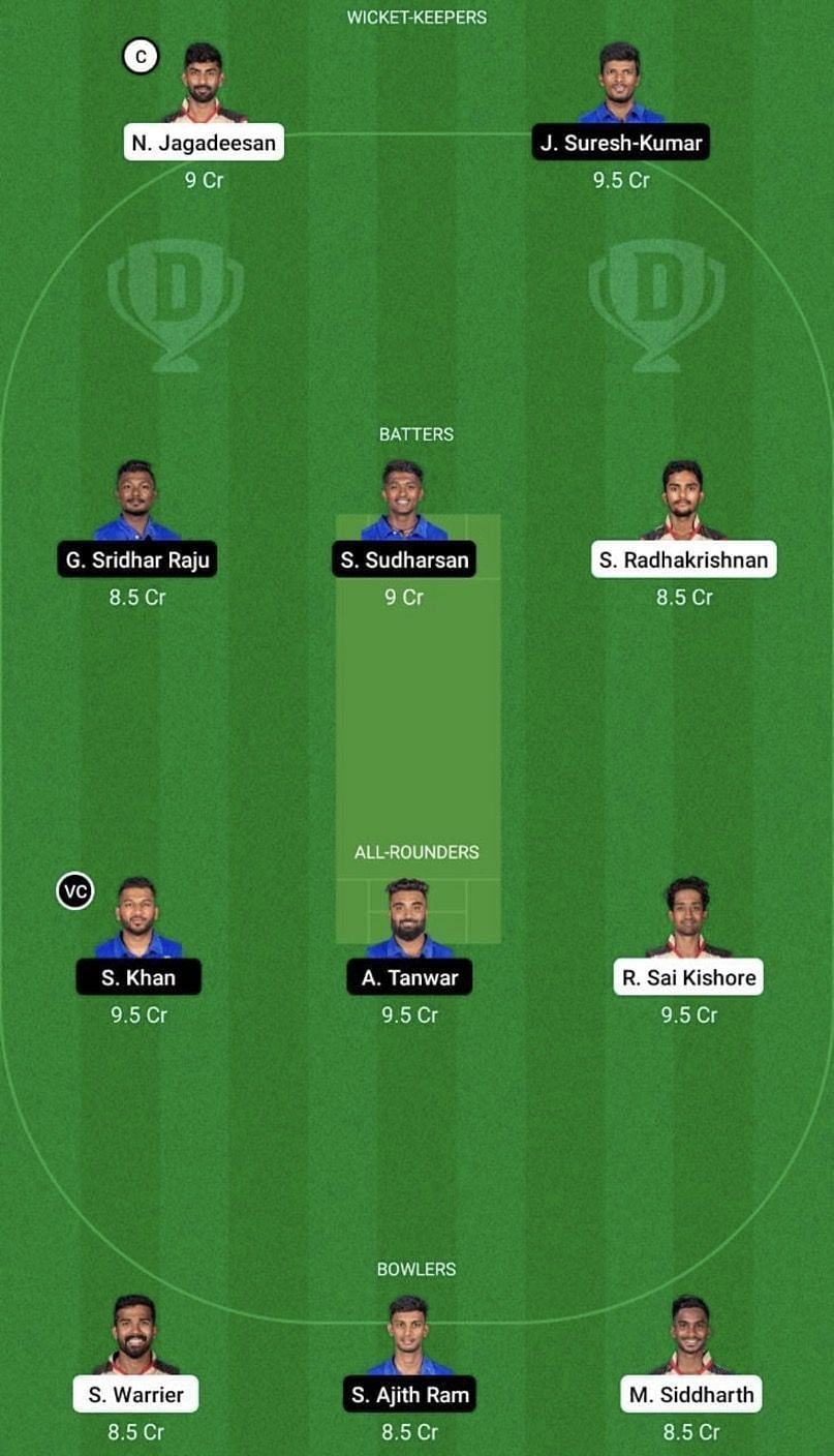 Fantasy Suggestion #1: N Jagadeesan, Ganga Sridhar Raju, Kaushik Gandhi, Sai Sudharsan, Shahrukh Khan, Abhishek Tanwar, R Sai Kishore, R Sonu Yadav, Sandeep Warrier, Manimaran Siddarth and Balu Surya.