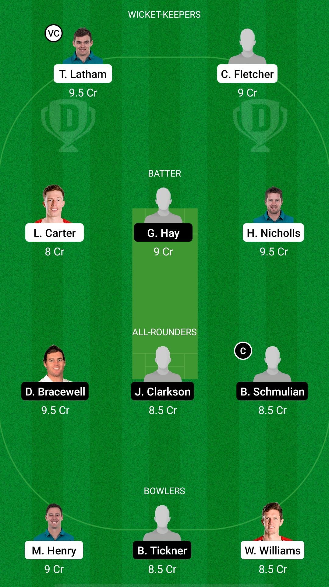 Fantasy Suggestion #1: Tom Latham, Cam Fletcher, Leo Carter, Greg Hay, Henry Nicholls, Doug Bracewell, Josh Clarkson, Brad Schmulian, Matt Henry, Blair Tickner, Will Williams.