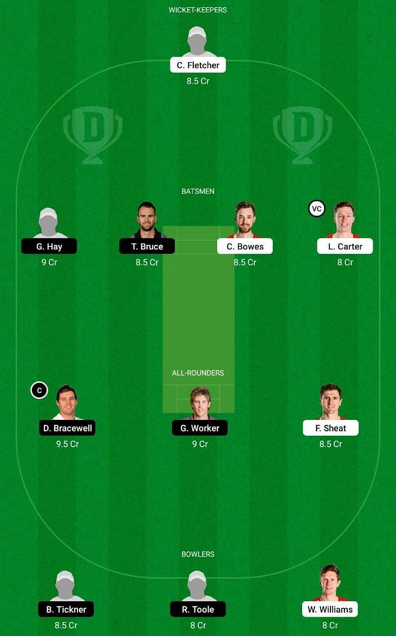 George Worker, Greg Hay (C), Tom Bruce, Dean Cleaver (WK), Josh Clarkson, Doug Bracewell, Blair Tickner, Ben Smith, Ray Toole, Brad Schmulian and Jayden Lennox