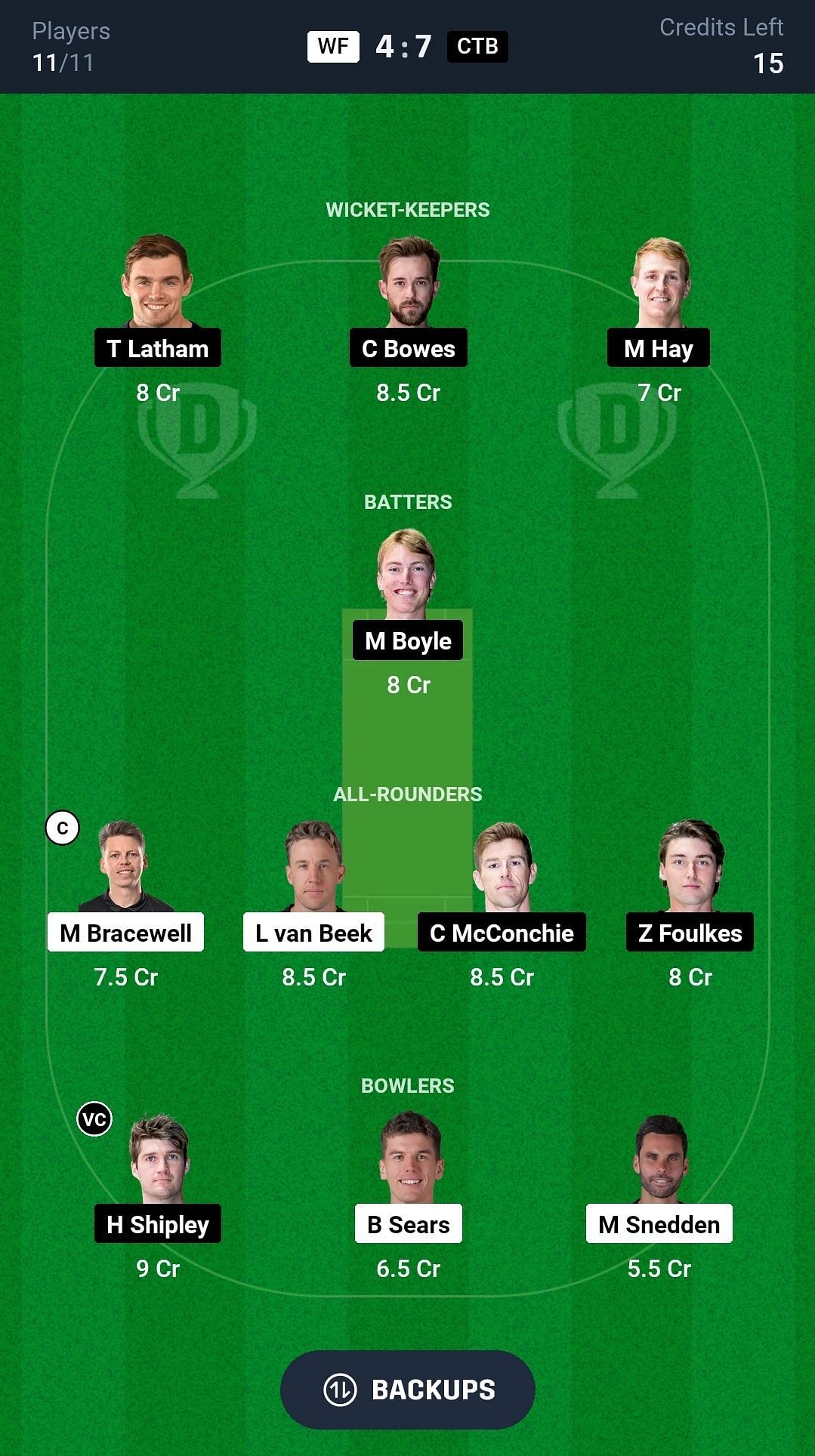 Chad Bowes is undoubtedly the best wicketkeeper pick for today's match. He is expected to bat in the top order and was in exceptional form in the recent franchise matches. He has smashed 159 runs in the last six matches. Tom Latham is another good wicketkeeper option for today's nail-biting match.