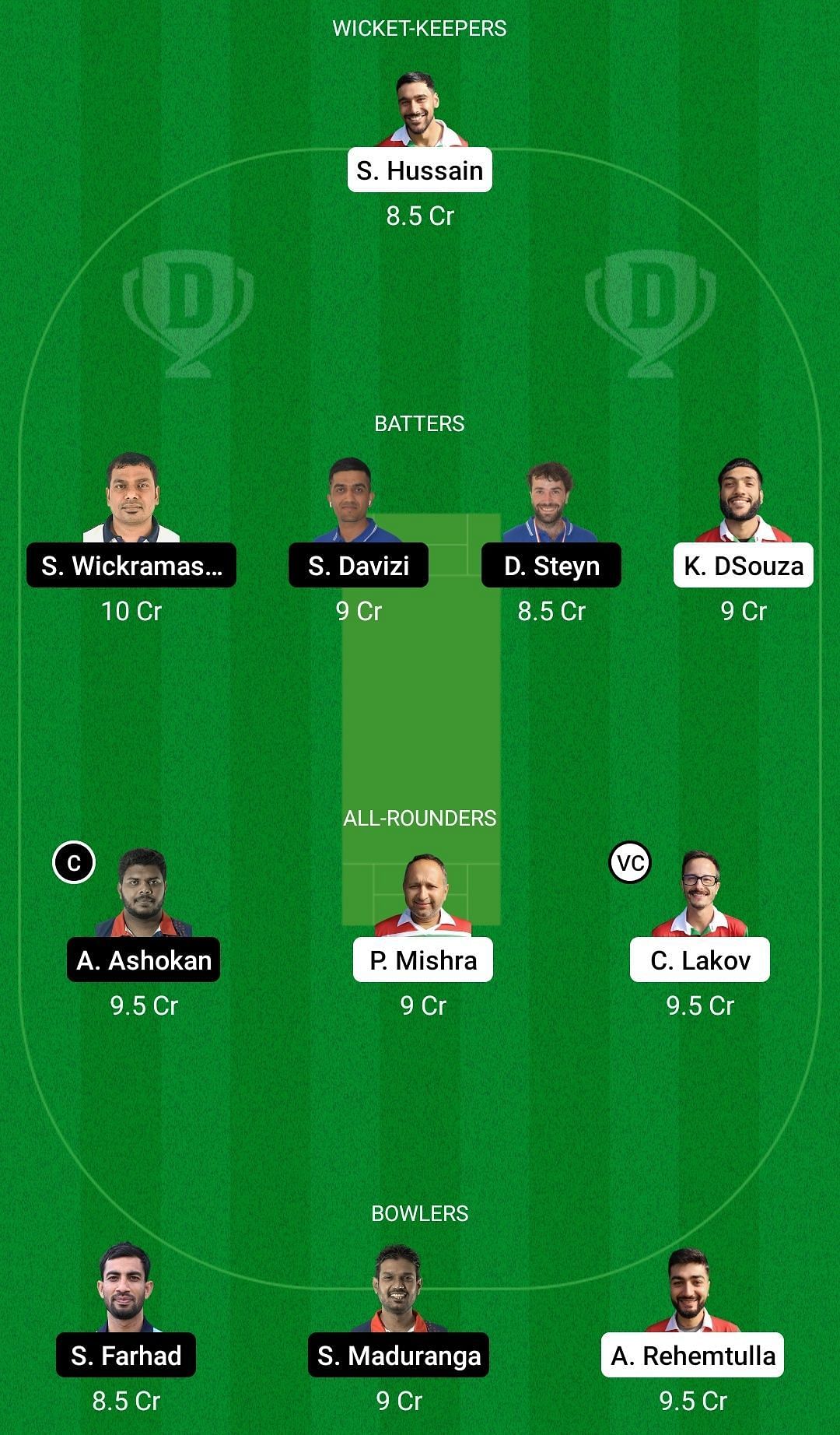 Fantasy Suggestion #1: Saim Hussain, Sudesh Wickramasekara, Sabawoon Davizi, Dylan Steyn, Kevin D’Souza, Arun Ashokan, Prakash Mishra, Chris Hristo Lakov, Shohas Abul Farhad, Sameera Maduranga, Asad Ali Rehemtulla.