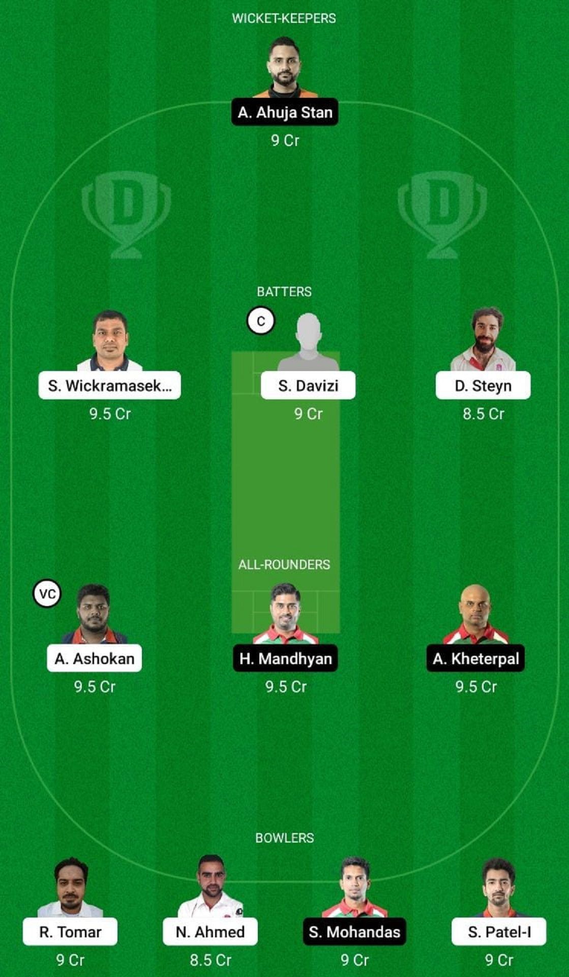 Fantasy Suggestion #1: A Ahuja Stan, S Davizi, D Steyn, S Wickramasekara, A Ashokan, H Mandhyan, A Kheterpal, R Tomar, S Mohandas, N Amed, S Patel