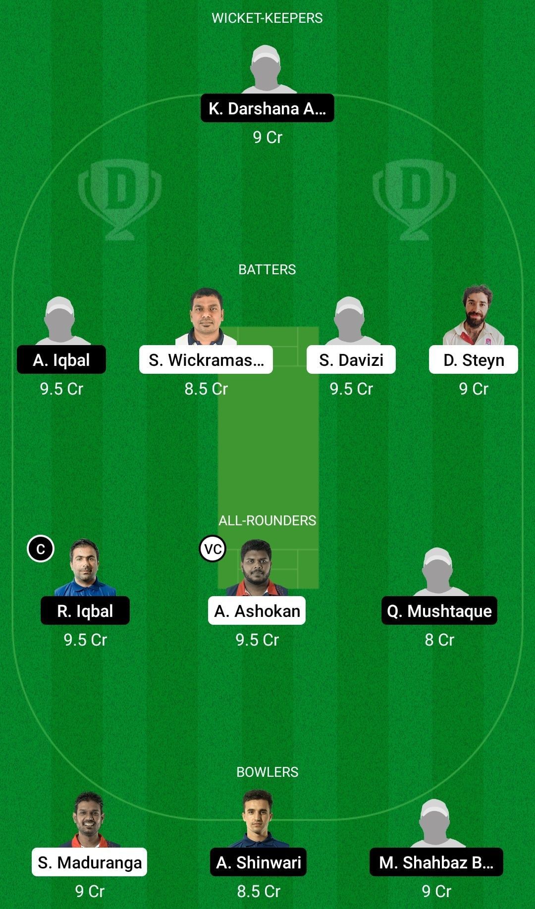 Fantasy Suggestion #1: Kuruge Abeyrathna, Ansar Iqbal, Sudesh Wickramasekara, Sabawoon Davizi, Dylan Steyn, Raza Iqbal, Arun Ashokan, Qamar Mushtaque, Sameera Maduranga, Ahmadullah Shinwari, Muhammad Butt.