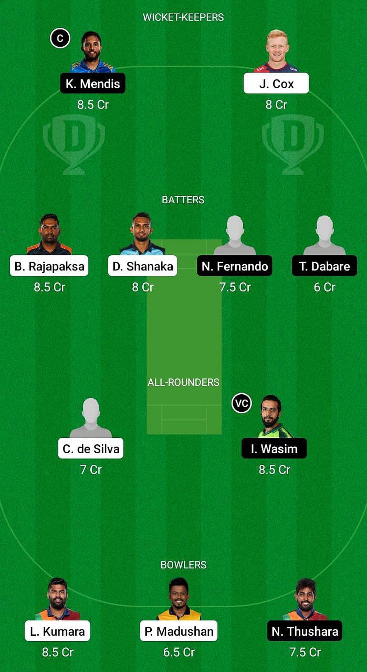 Shevon Daniel, Lasith Croospulle, Jordan Cox (w), Bhanuka Rajapaksa, Dasun Shanaka (c), Chaturanga de Silva, Tom Abell, Noor Ahmad, Pramod Madushan, Paul van Meekeren, Lahiru Kumara