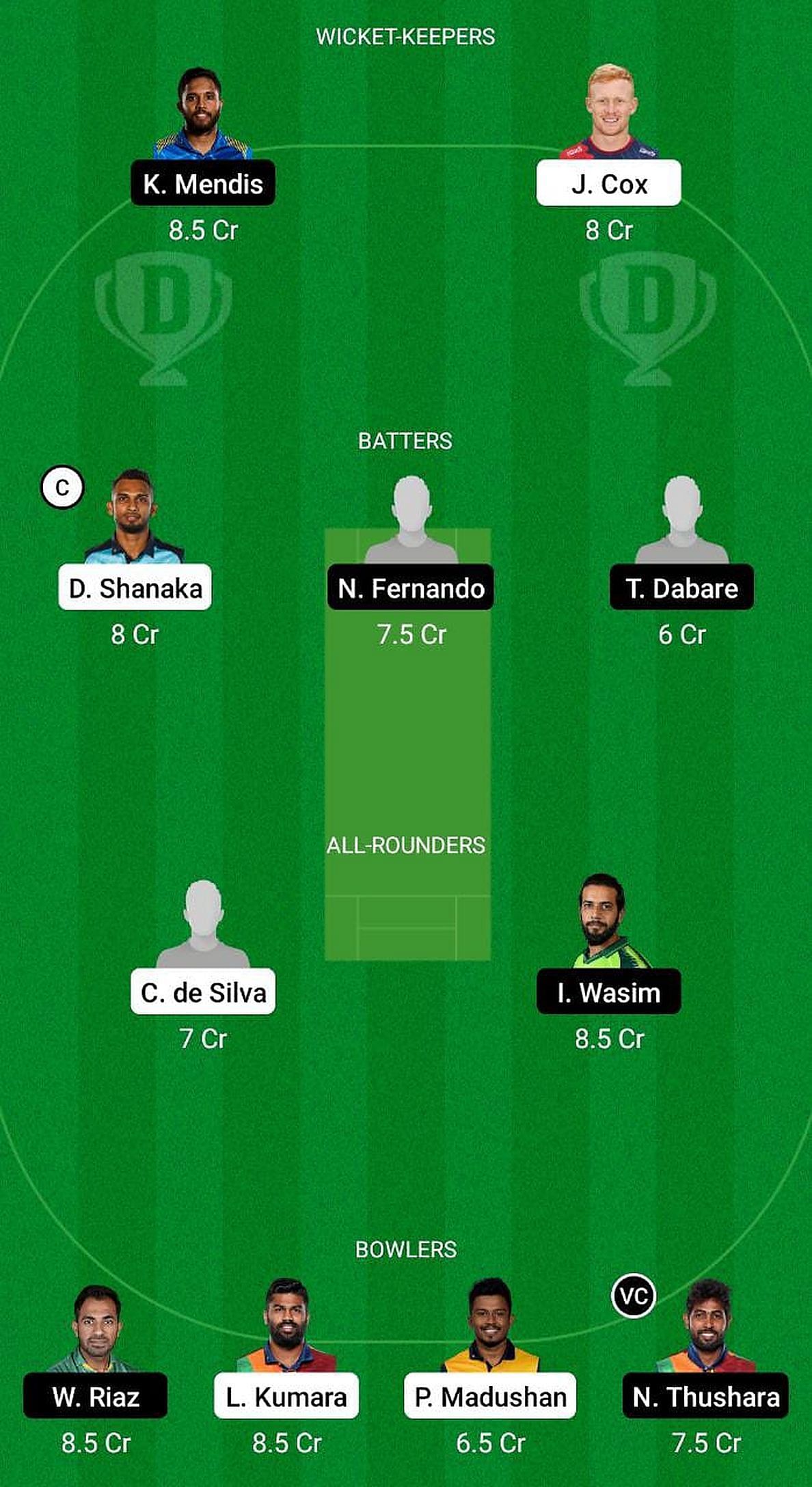 Thanuka Dabare, Kusal Mendis (c&wk), Lahiru Udara, Oshada Fernando, Asad Shafiq, Nuwanidu Fernando, Imad Wasim, Anwar Ali, Wahab Riaz, Nuwan Thushara, Lakshan Sandakan