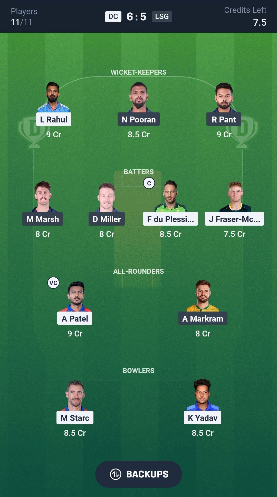 Jake Fraser McGurk and Faf du Plessis are the two best batter picks for today's Dream11 team. Du Plessis was in good form in last year's IPL, and will try to continue the same form. He has smashed 238 runs in five venue matches. David Miller is another good batter for today's nail-biting match.