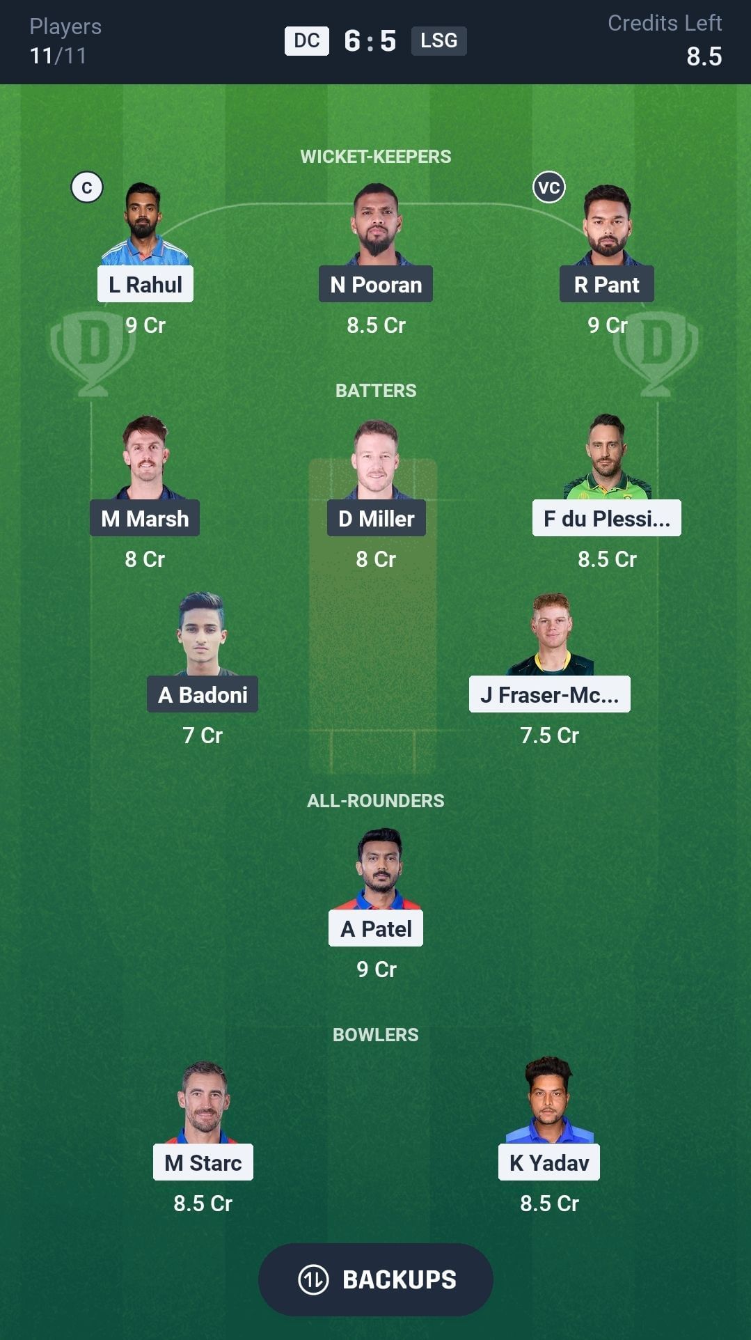 Delhi Capitals vs Lucknow SuperGiants Dream11 Prediction Today, Grand League