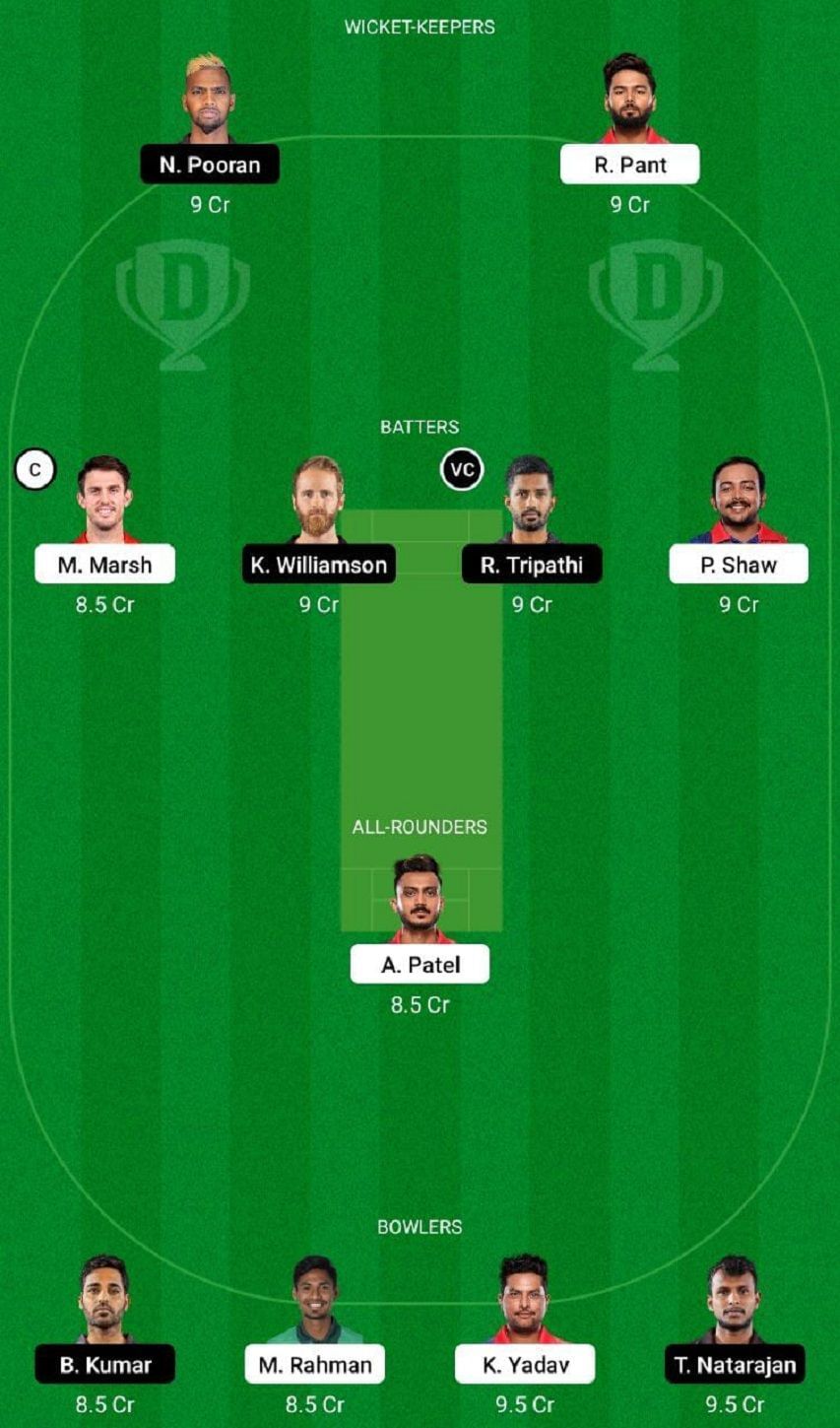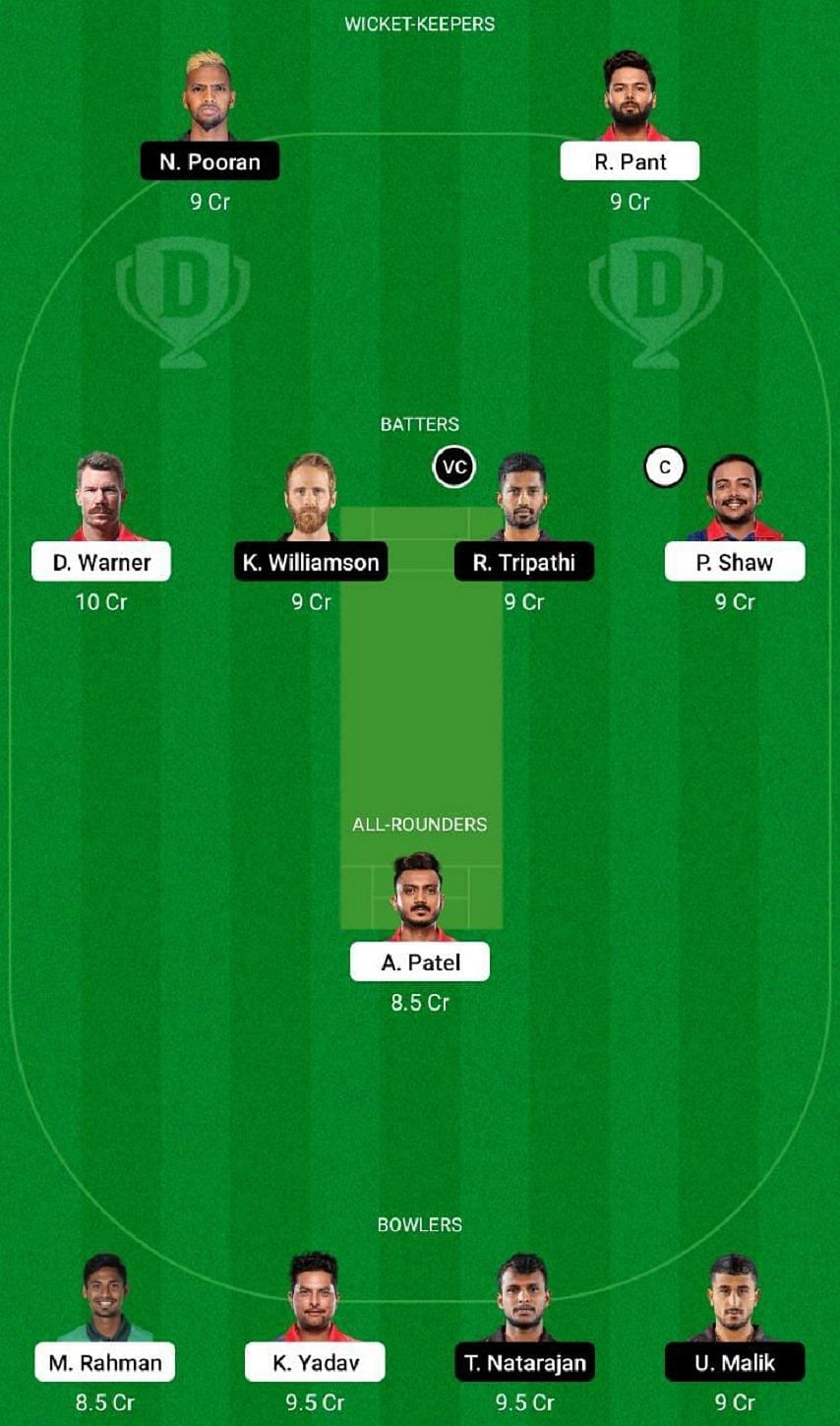 Fantasy Suggestion #1: Nicholas Pooran, Rishabh Pant, David Warner, Kane Williamson, Rahul Tripathi, Prithvi Shaw, Axar Patel, Mustafizur Rahman, Kuldeep Yadav, T Natarajan and Umran Malik.