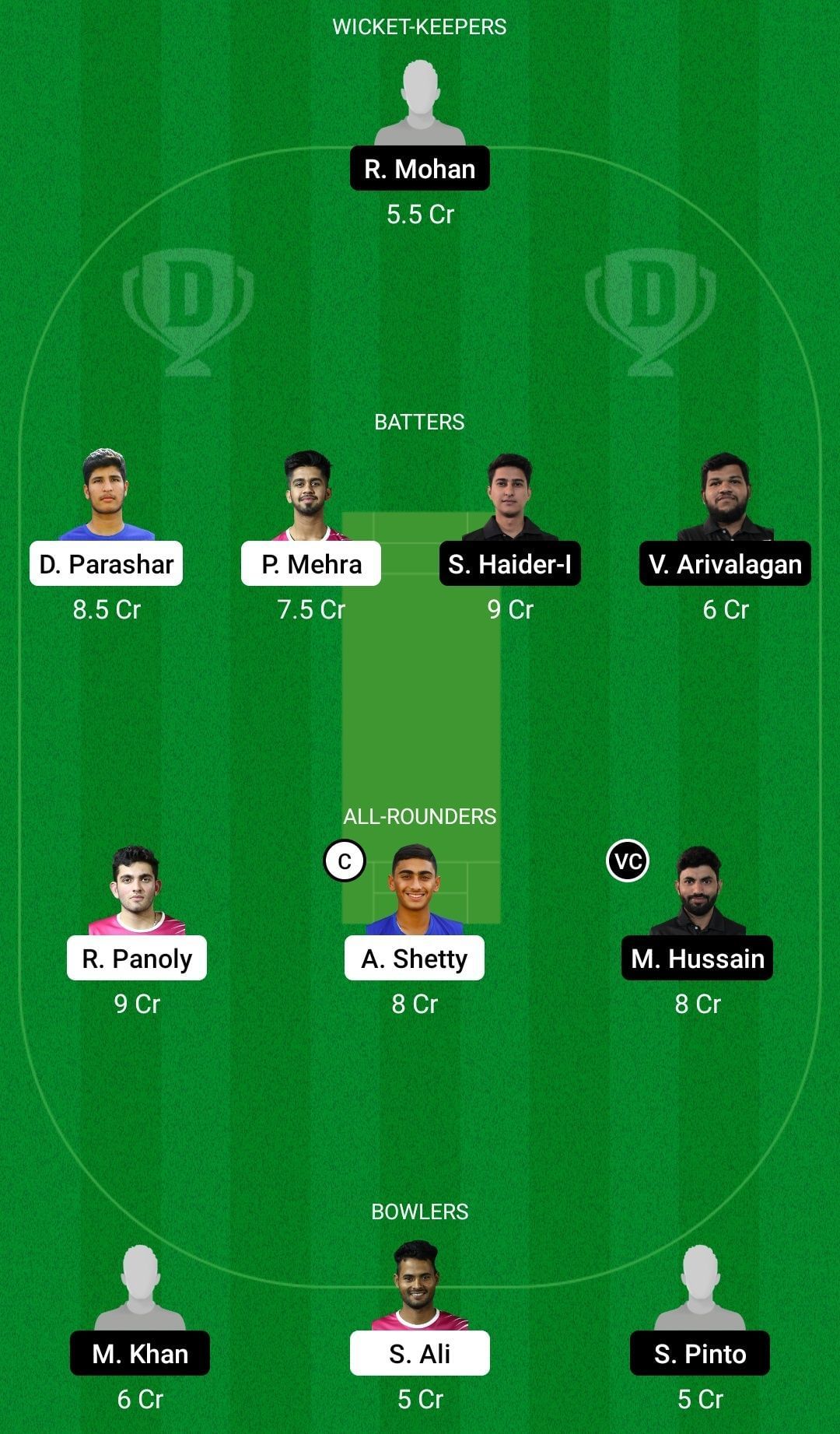 All-rounders: Ronak Panoly, Adithya Shetty (c), Mazhar Hussain (vc)