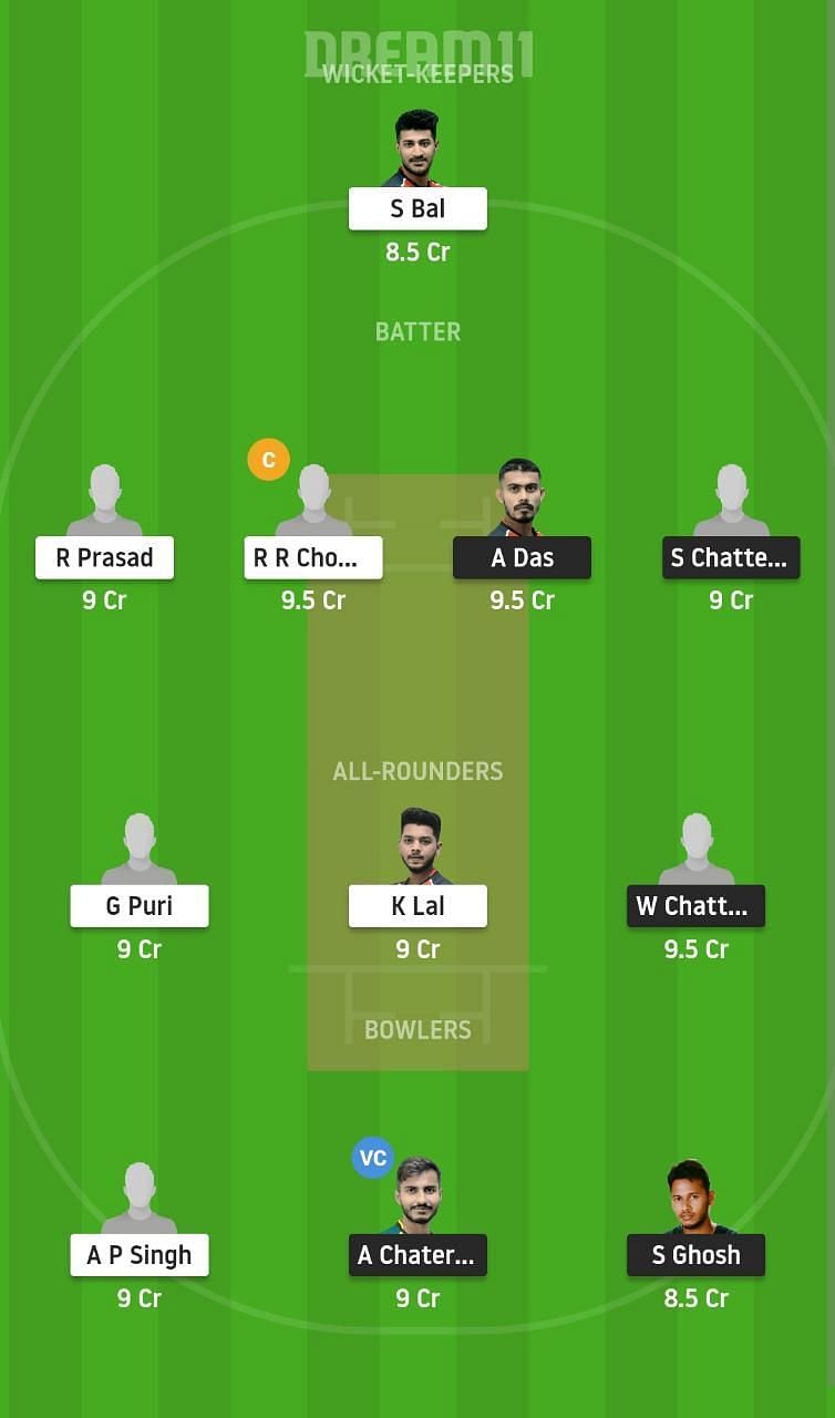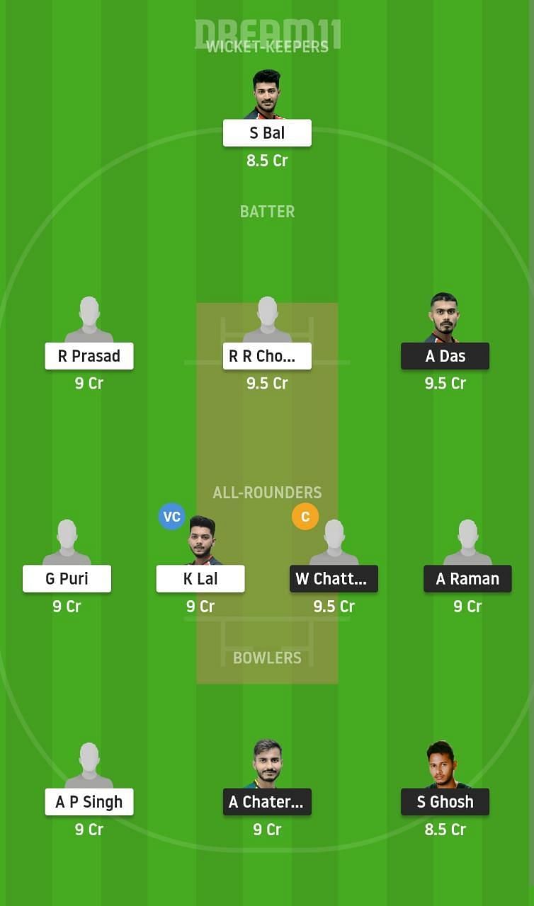 Fantasy Suggestion #1: S Bal, RR Chowdhury, R Prasad, A Das, W Chatterjee, K Lal, G Puri, A Raman, A Chaterjee, AP Singh, S Ghosh