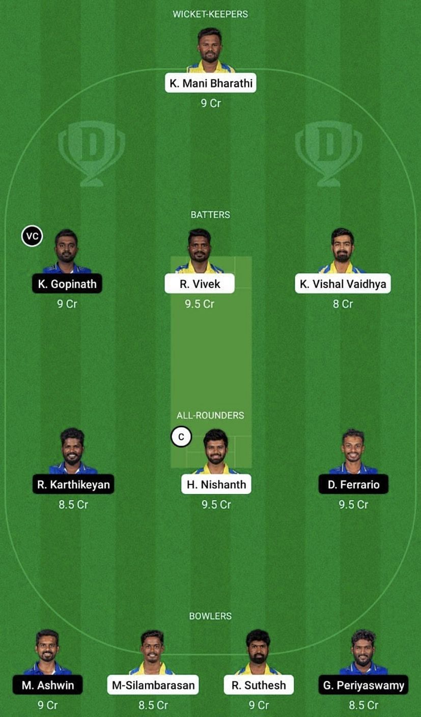 Fantasy Suggestion #2: K Mani Bharathi, K Gopinath, M Hariharan, K Vishal Vaidhya, R Karthikeyan, H Nishanth, D Ferrario, M Ashwin, M Silambarasan, L Vignesh and G Periyaswamy.