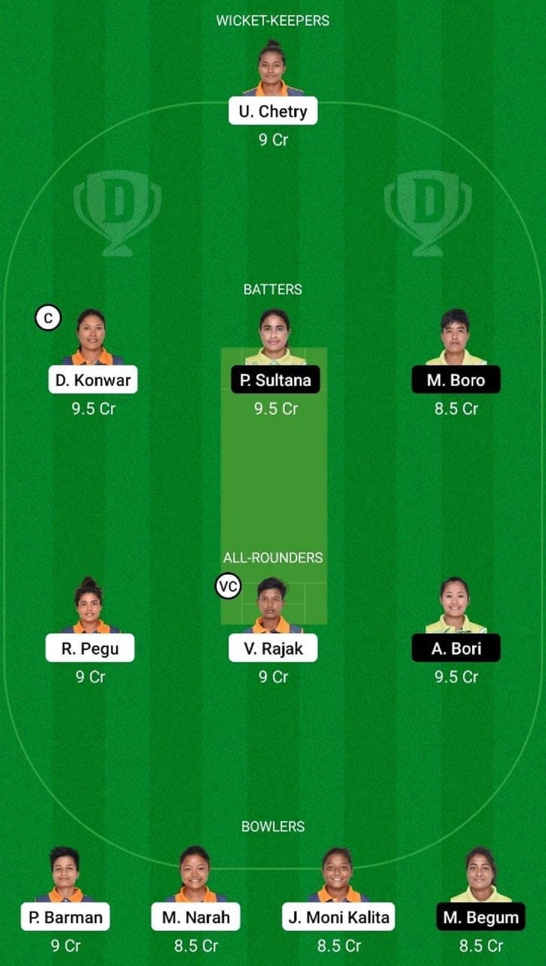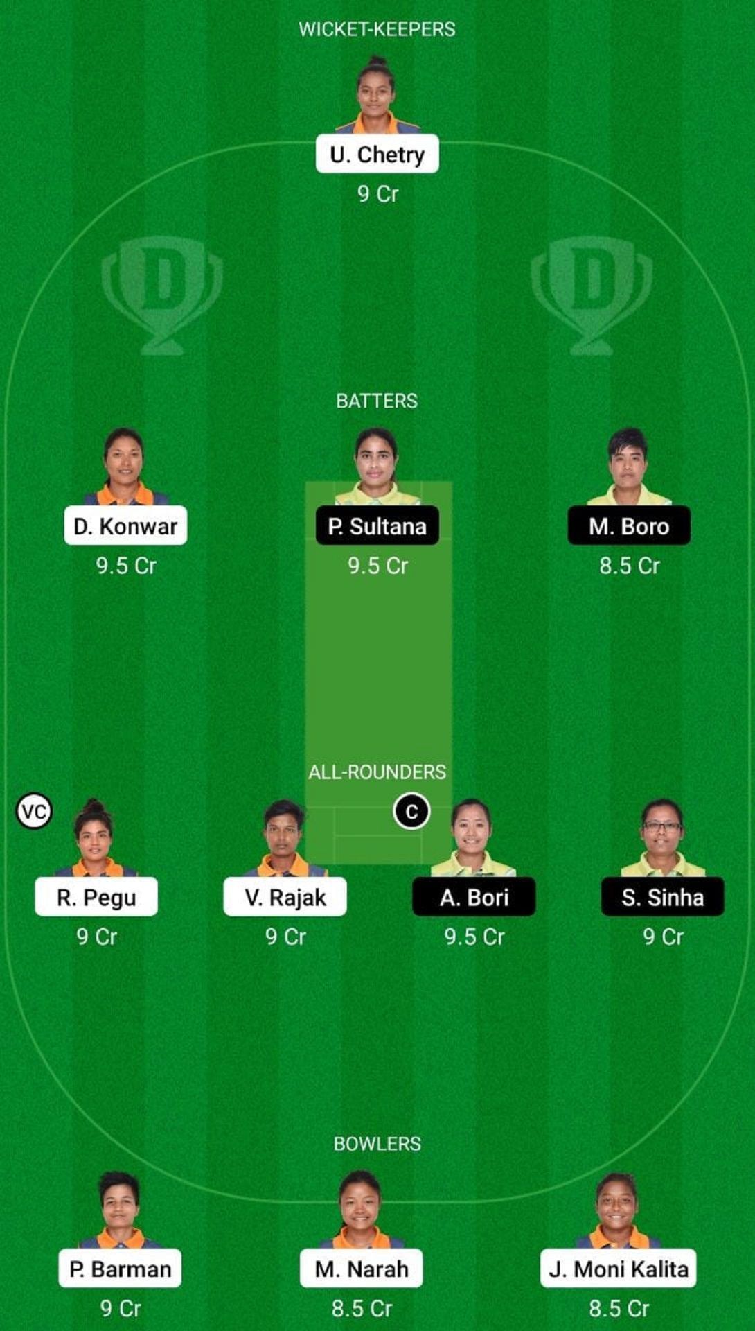 Fantasy Suggestion #1: U Chetry, D Konwar, P Sultana, M Boro, A Bori, R Pegu, V Rajak, S Sinha, J Moni Kalita, M Narah, P Barman