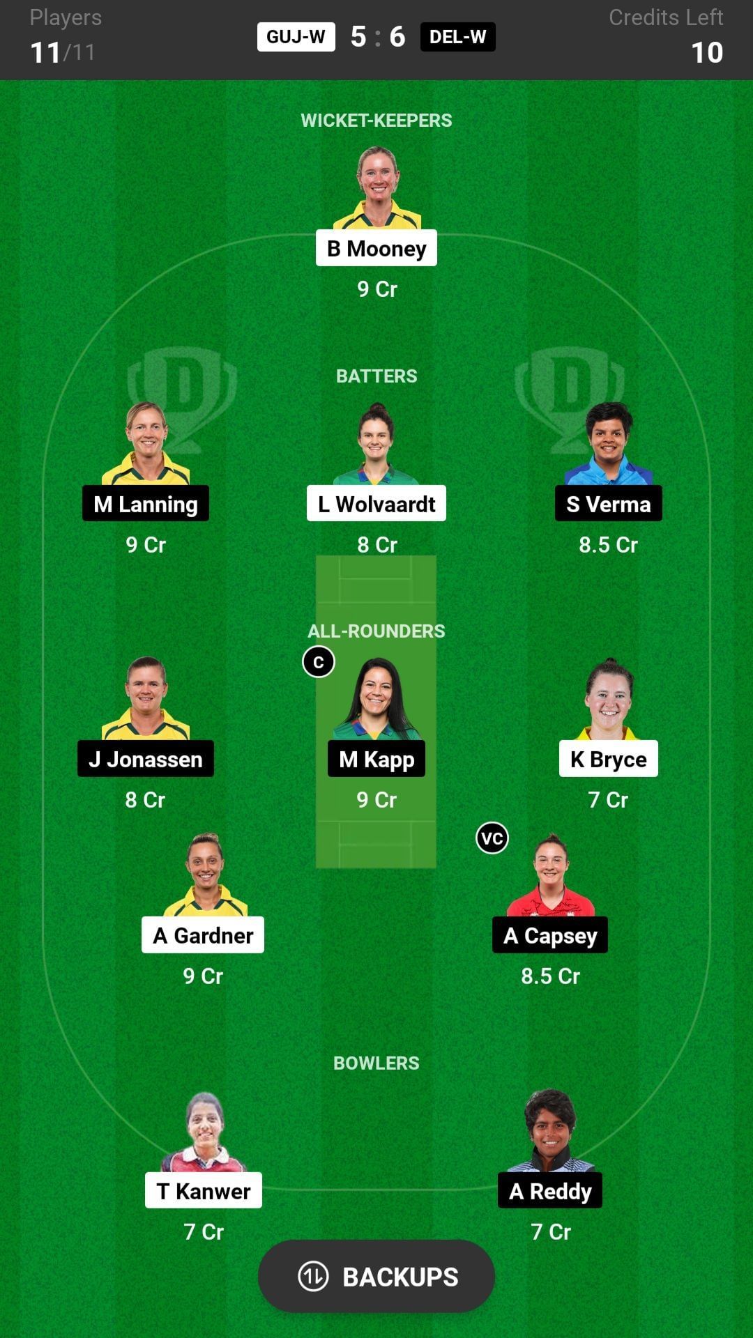 Since the pitch is expected to be well-balanced, you can make M Kapp the captain of your team. She will play a crucial role in today's match since she is expected to bat in the top order and also bowl a good number of overs. She has smashed 48 runs in addition to taking six wickets in the last three matches.