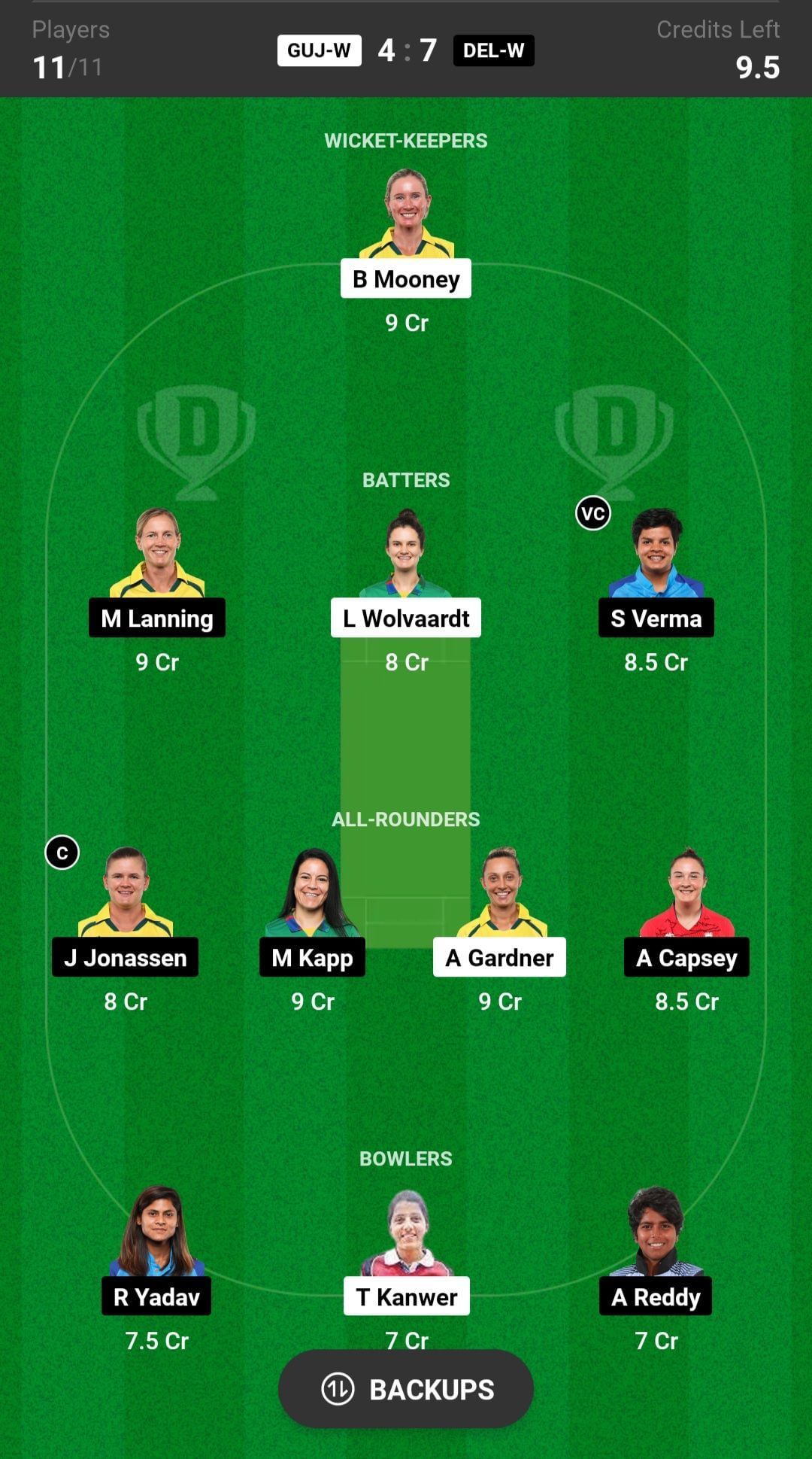 DEL-W vs GUJ-W match captain and vice-captain choices