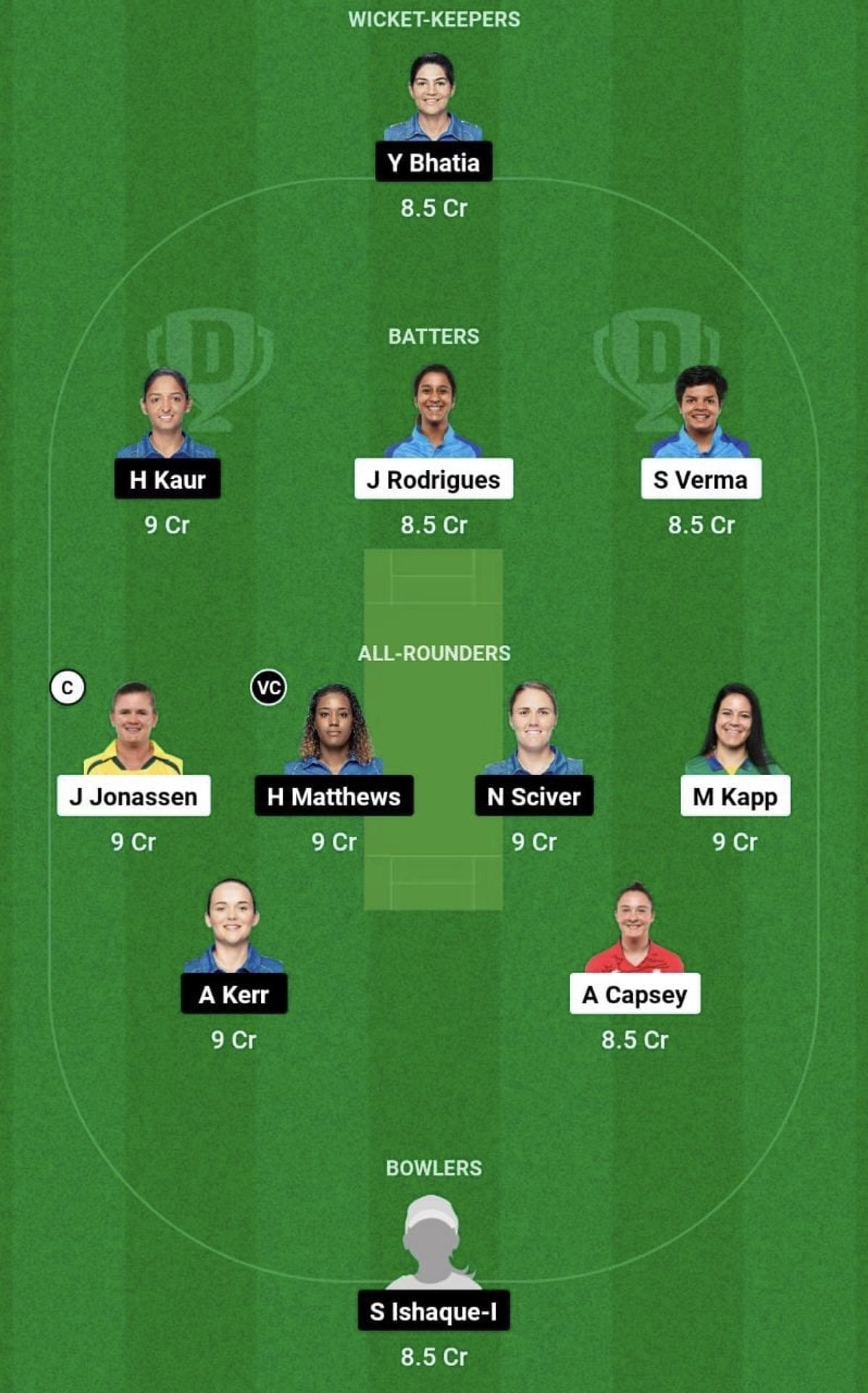 With the conditions suiting her, Kapp is a brilliant choice as captain or vice-captain for your DEL-W vs MI-W Dream11 prediction team.